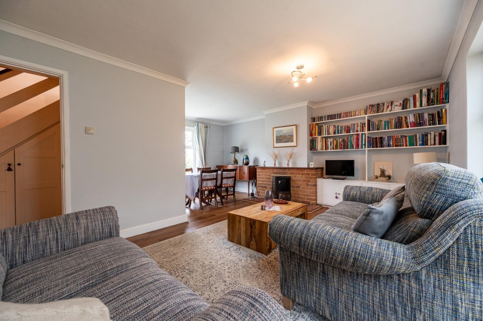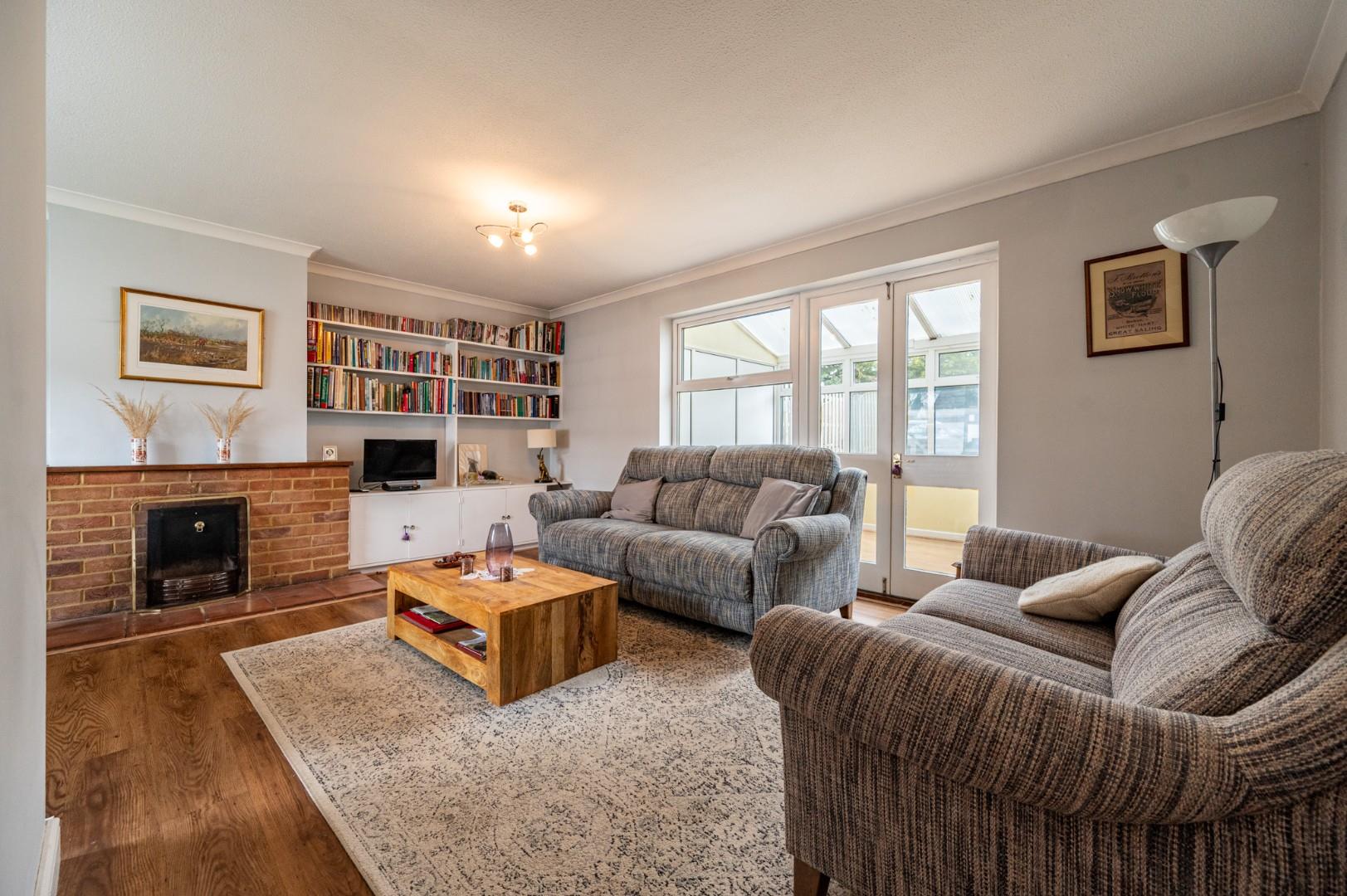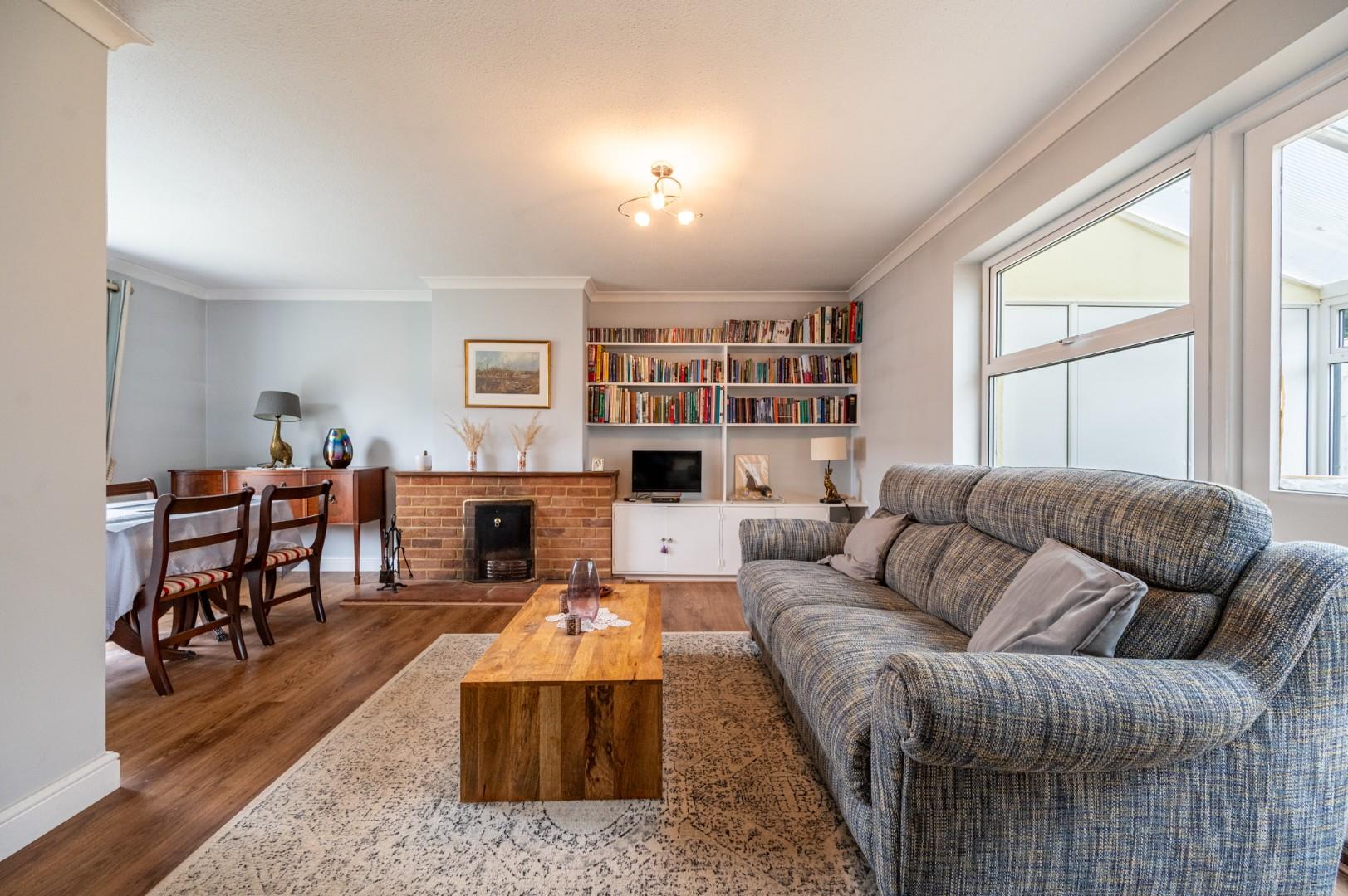 Lounge/Dining Room - 5.145 x 5.440 (16'10" x 17'10") - Window to front aspect, window to rear aspect, doors to rear aspect leading to conservatory, brick built fire.