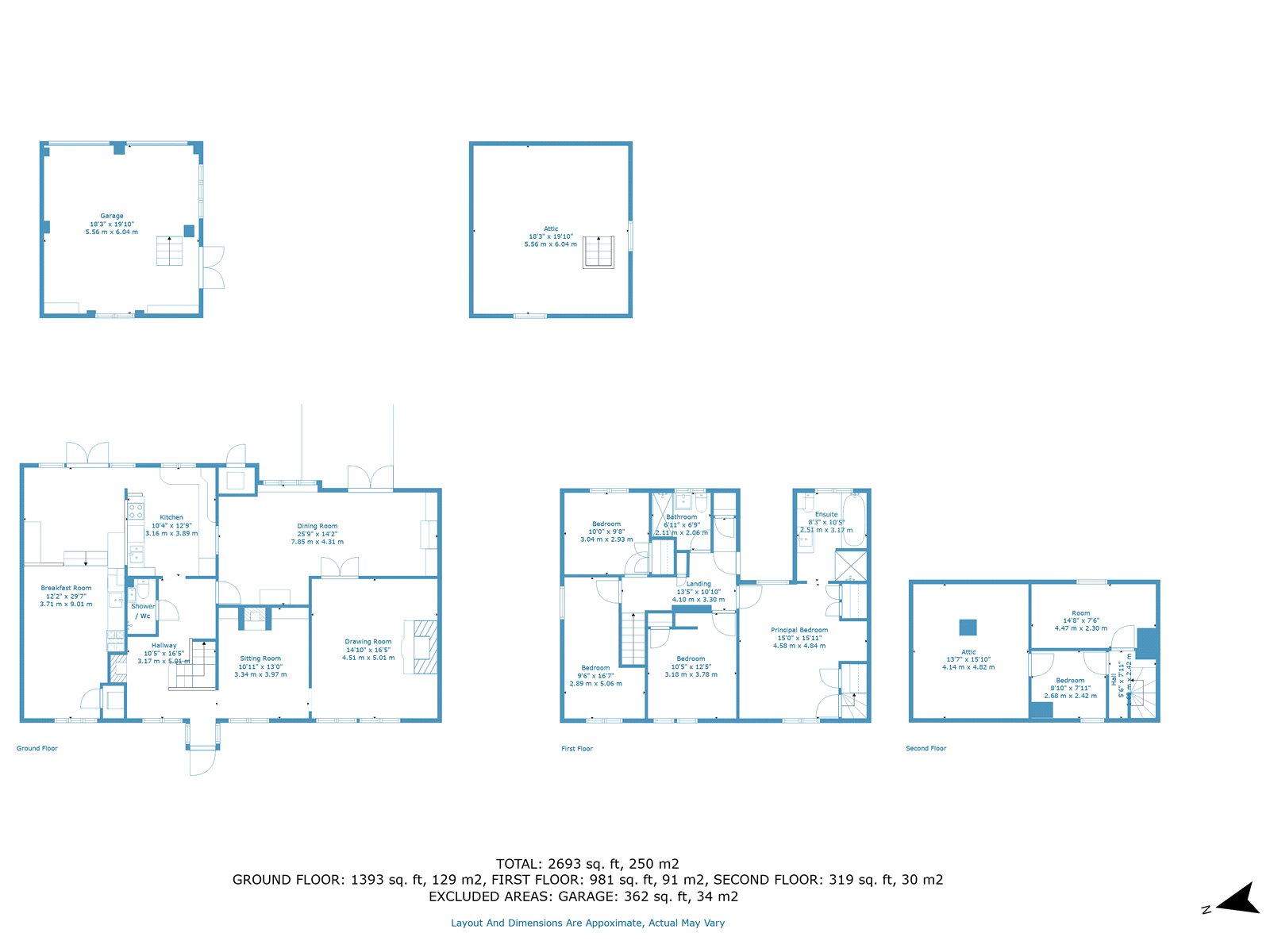 Upstairs, the first-floor landing gives access to four main bedrooms and the family bathroom. The principal bedroom is a particularly spacious room, complete with two fitted wardrobes, a large en-suite bath/shower room, and a staircase leading up to the second floor.