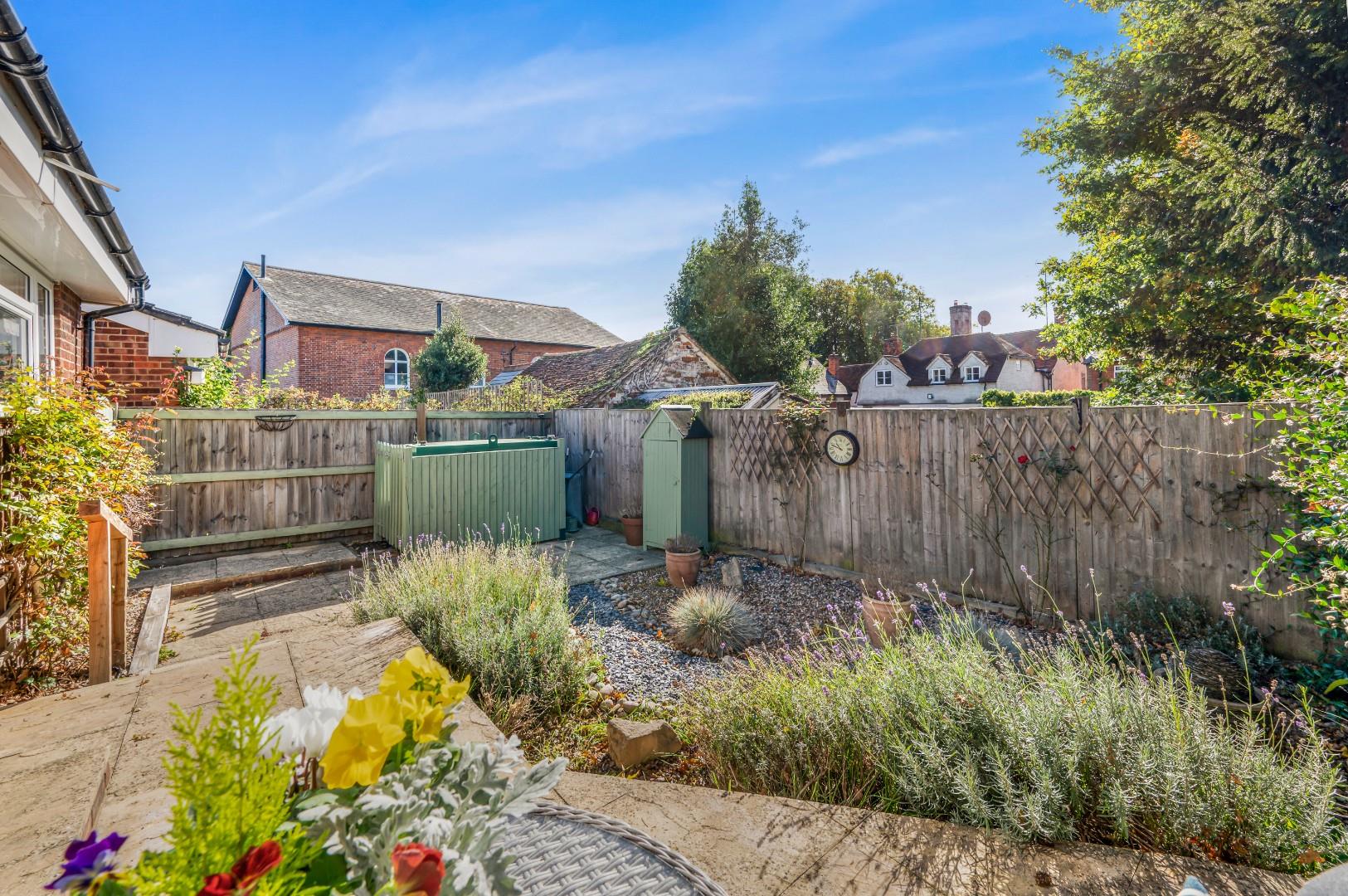 The rear garden is well maintained with a wide variety of shrubs and borders.