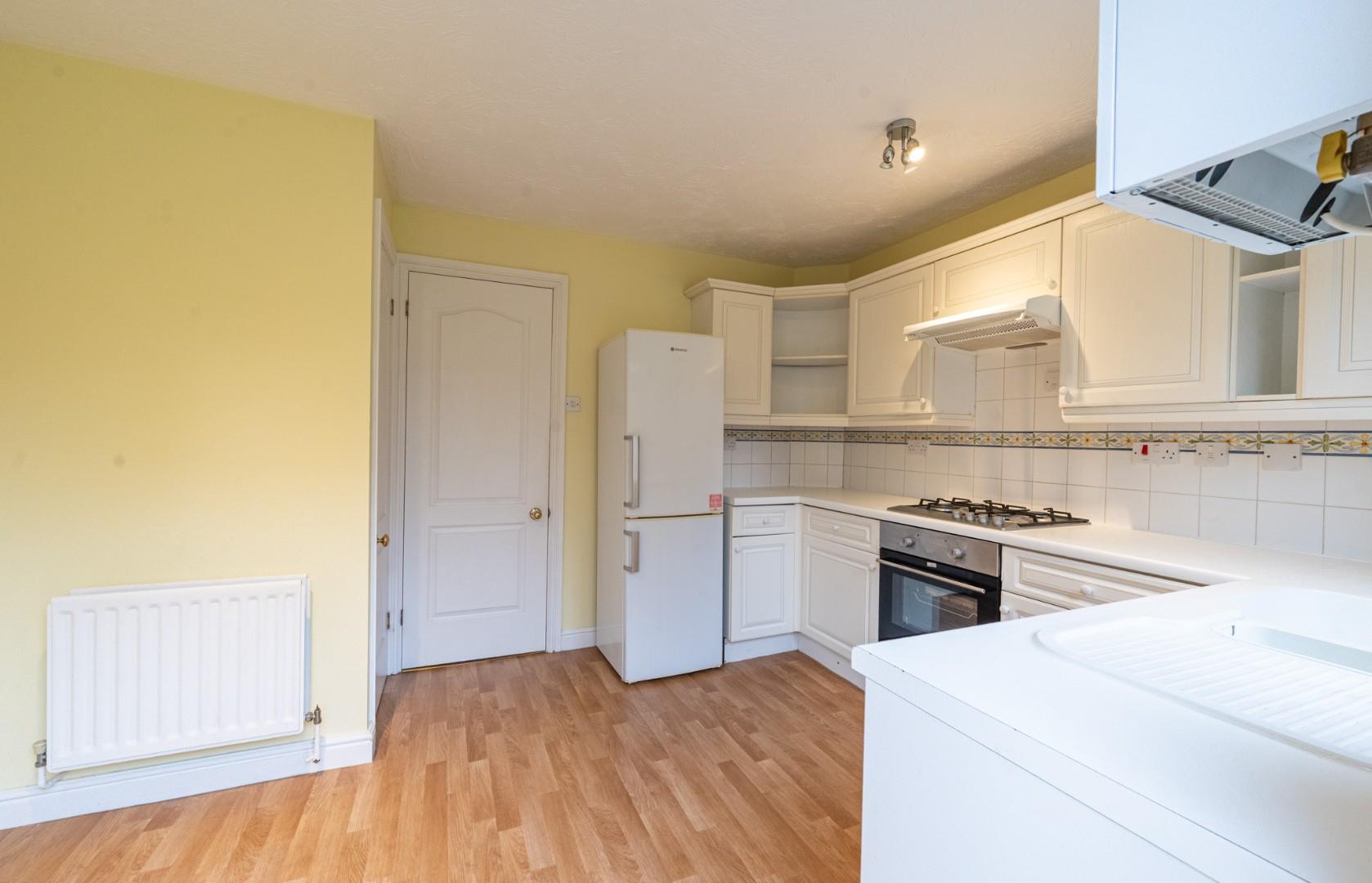 Kitchen/Dining Room - 3.76m x 3.07m (12'4" x 10'0") - Two windows to rear aspect, glazed door to rear aspect leading to rear garden, fitted with a range of eye and base level units with working surface over, integrated oven, inset gas hob with extractor fan over, space for washing machine, space for fridge/freezer.
