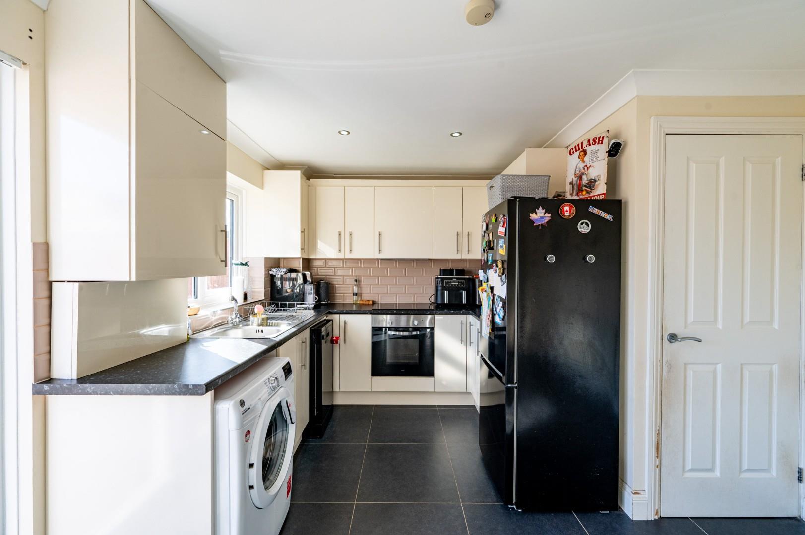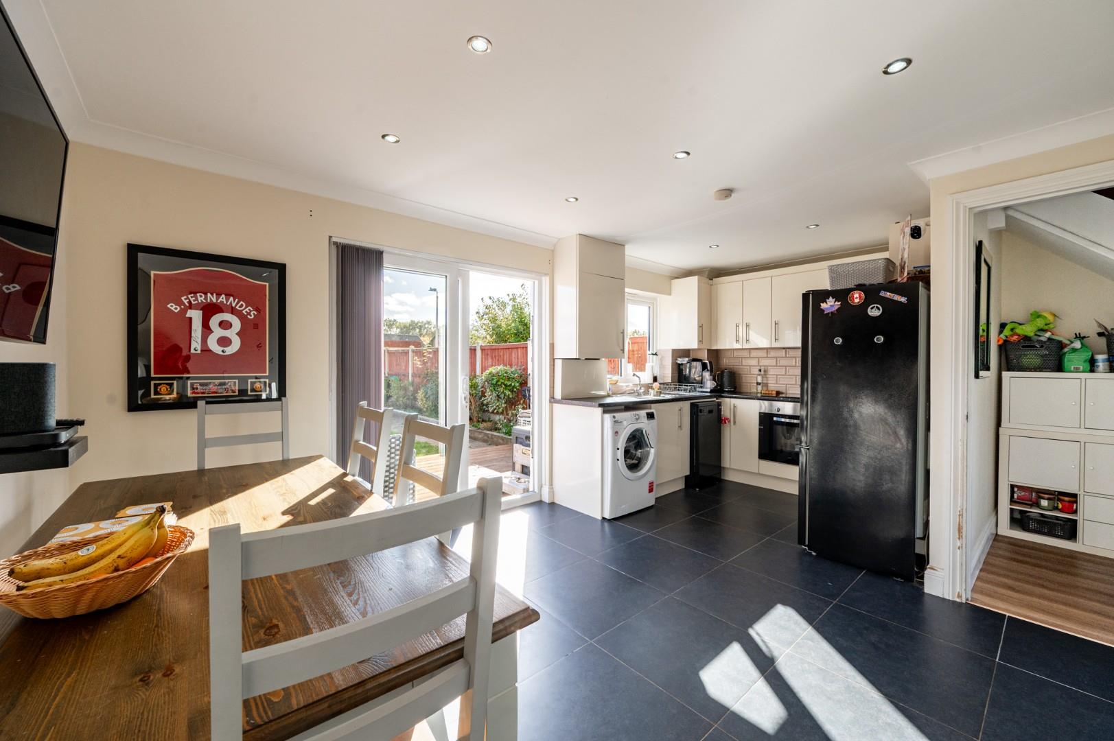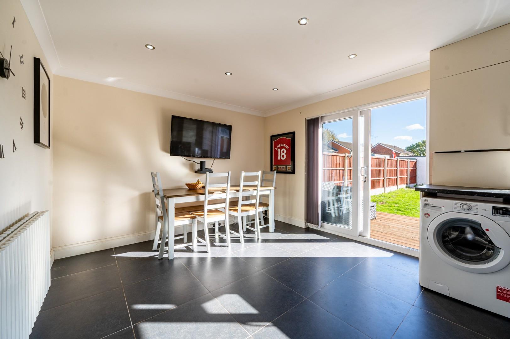 Kitchen/Diner - 5.38 x 3.51 (17'7" x 11'6") - Patio sliding doors to rear aspect leading to rear garden, window to rear aspect, range of wall and base units with rolled edge work surfaces incorporating inset sink and drainer, integrated oven, hob and extractor over, space for washing machine, dishwasher & fridge freezer.