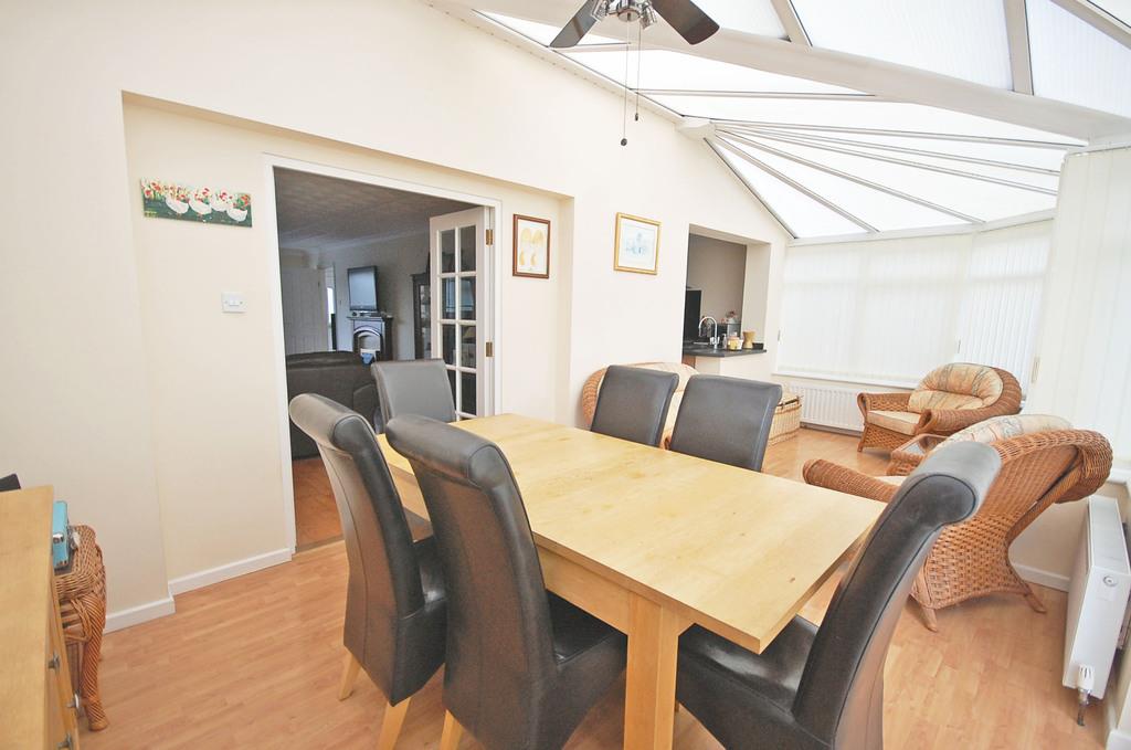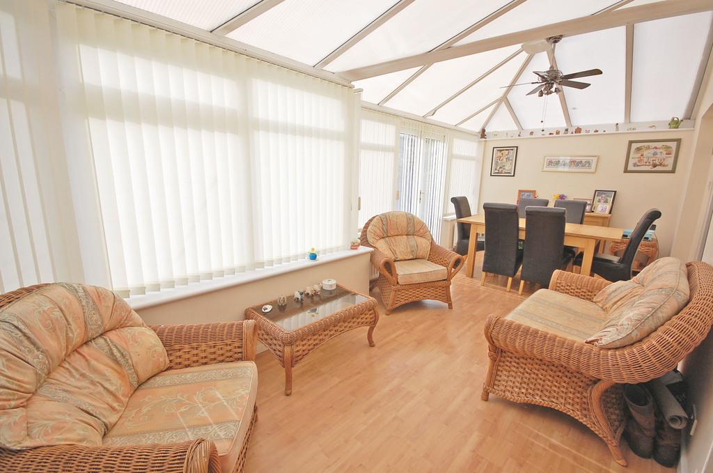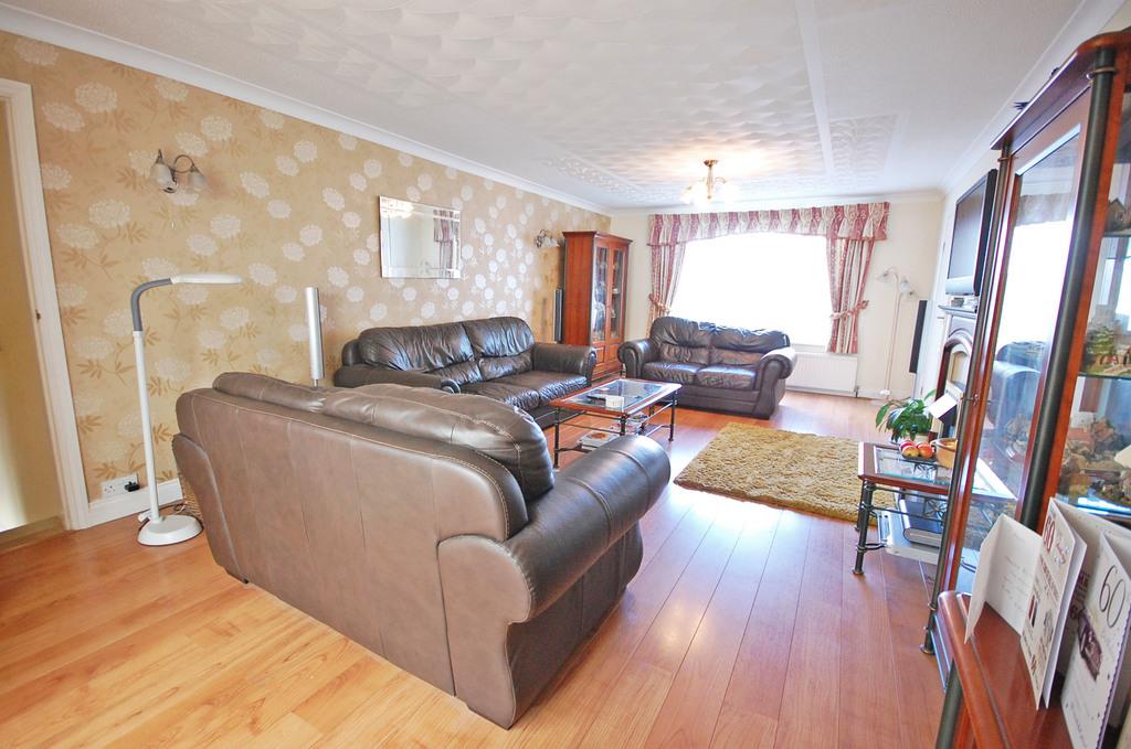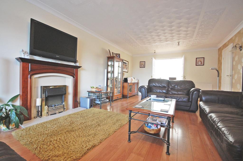 Double glazed window to front aspect, electric fire with wooden surround, two radiators, laminate flooring and textured coved ceiling. Double doors to conservatory. Door to study/stairs to bedroom four.