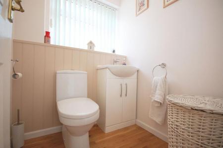 Opaque double glazed window to side aspect, low level WC, vanity wash hand basin, radiator, laminate flooring and textured ceiling.