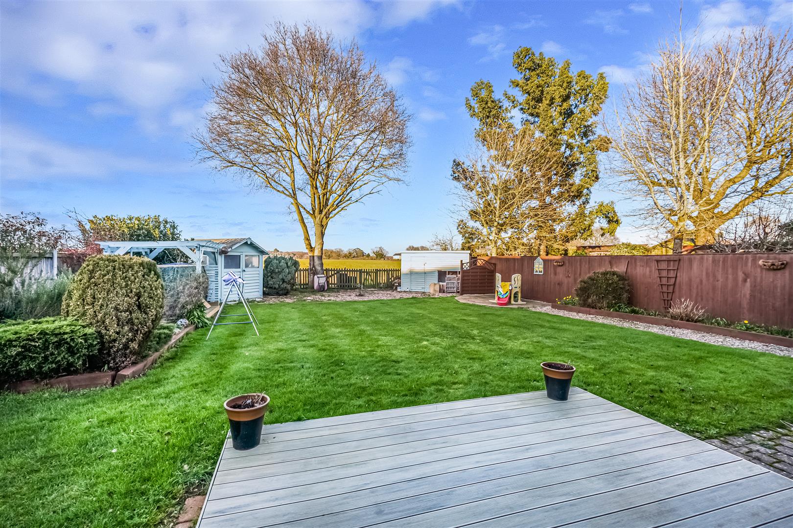 Outside, the rear garden is mainly laid to lawn with a decked seating area and two storage sheds, providing an excellent space for outdoor dining and entertaining whilst enjoying the peaceful surroundings.