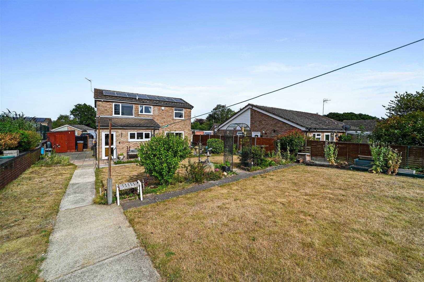 A large utility room extends from the kitchen, providing direct access to the west-facing rear garden. This outdoor haven, with its sun-soaked patio,neatly maintained lawn, and vibrant borders, is perfect for outdoor dining, gardening, or simply soaking up the serene atmosphere. A workshop and shed complete this external paradise, offering storage and space for hobbies.