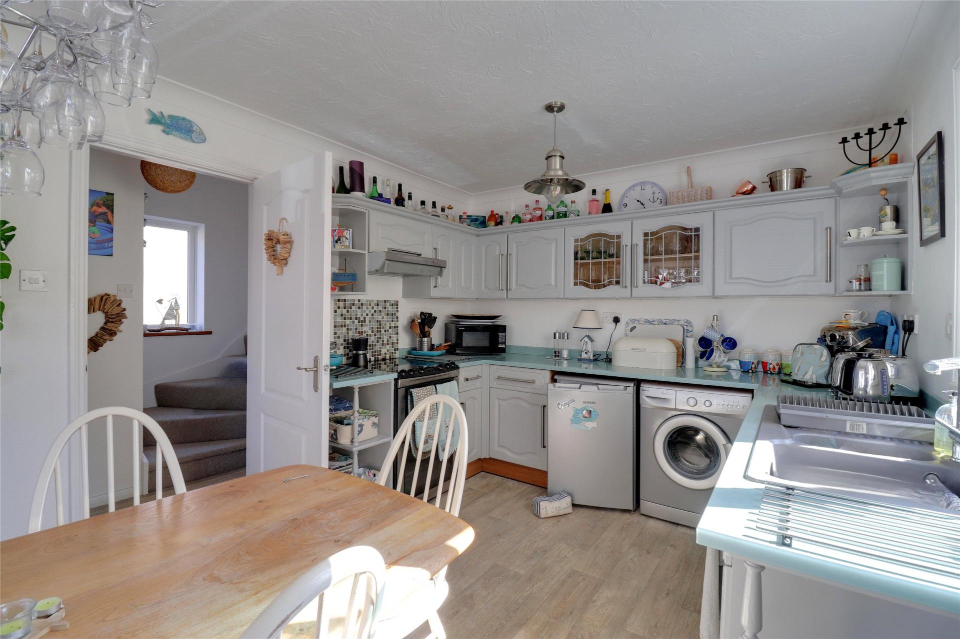 Lovingly enjoyed as a family holiday home for many years, the property boasts three well-proportioned double bedrooms, a family bathroom, and a well-appointed kitchen/diner featuring a range of fitted units, a characterful box window, and a designated dining area. The generous lounge, positioned at the rear of the property, provides a comfortable and inviting living space, with the added benefit of a conservatory leading off, offering an ideal spot to relax and enjoy the garden views.