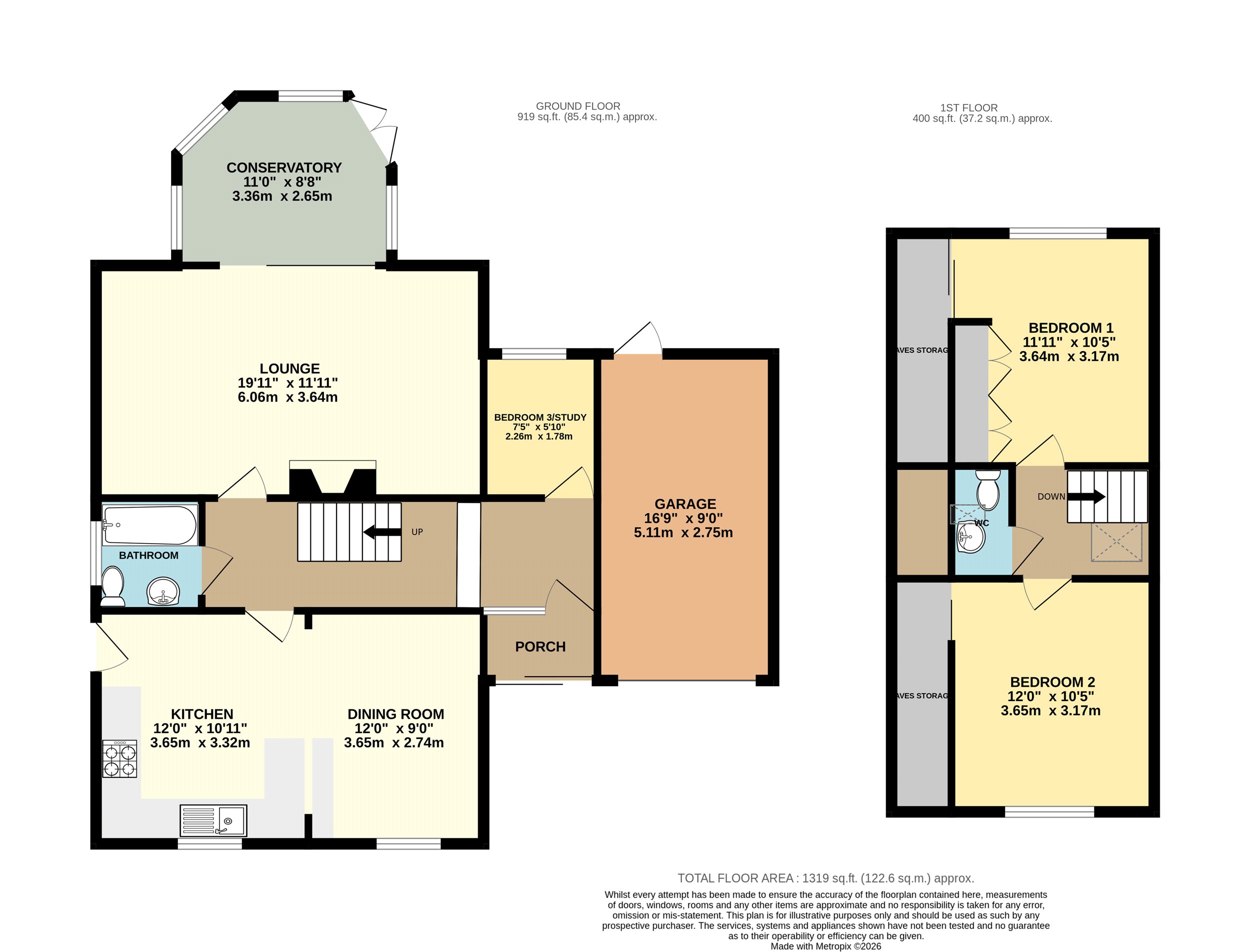 Bedroom 2 12' x 10'5" (3.66m x 3.18m).