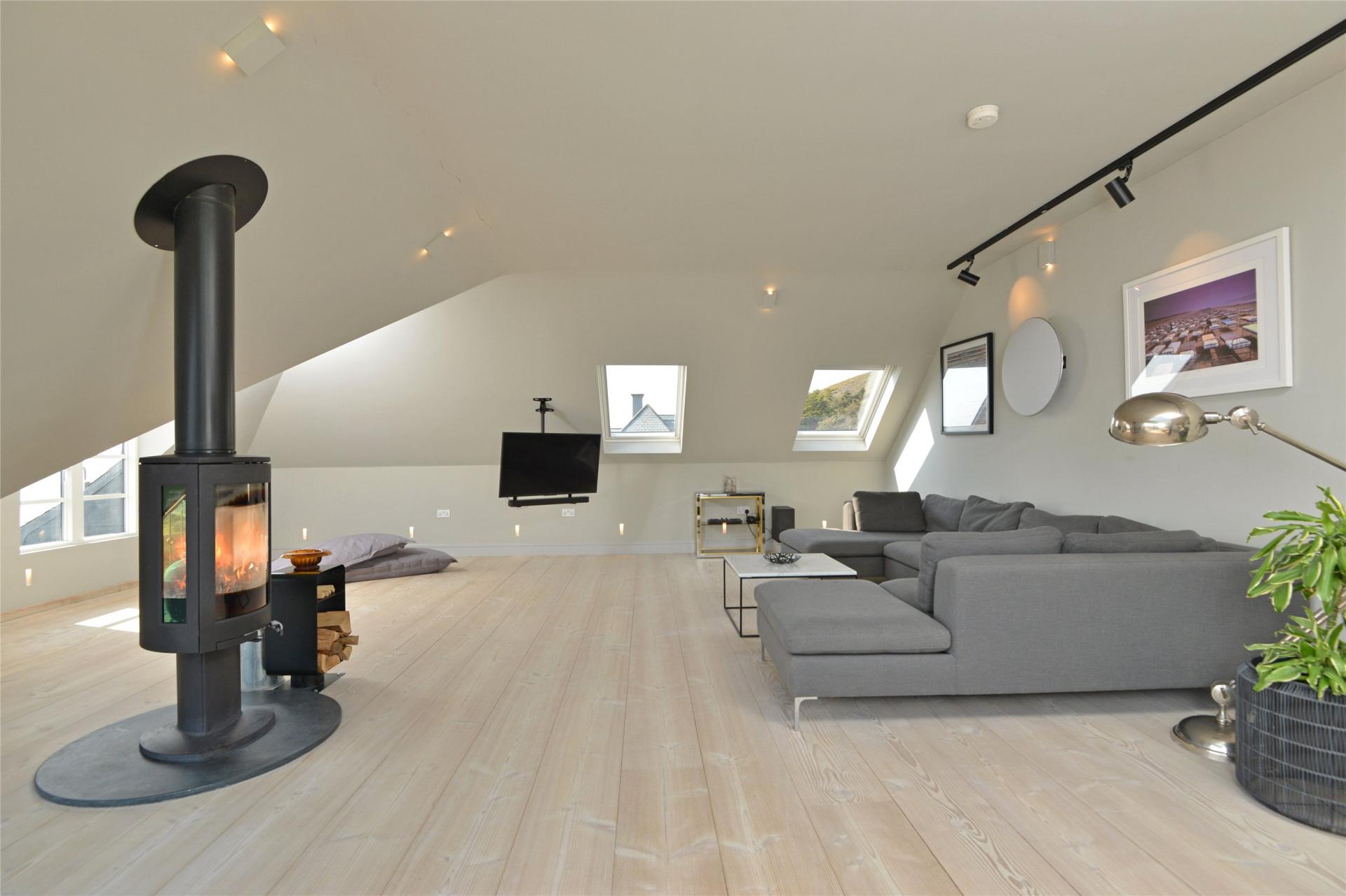 - IMPRESSIVE OPEN-PLAN LIVING SPACE WITH FEATURE WOOD-BURNING STOVE