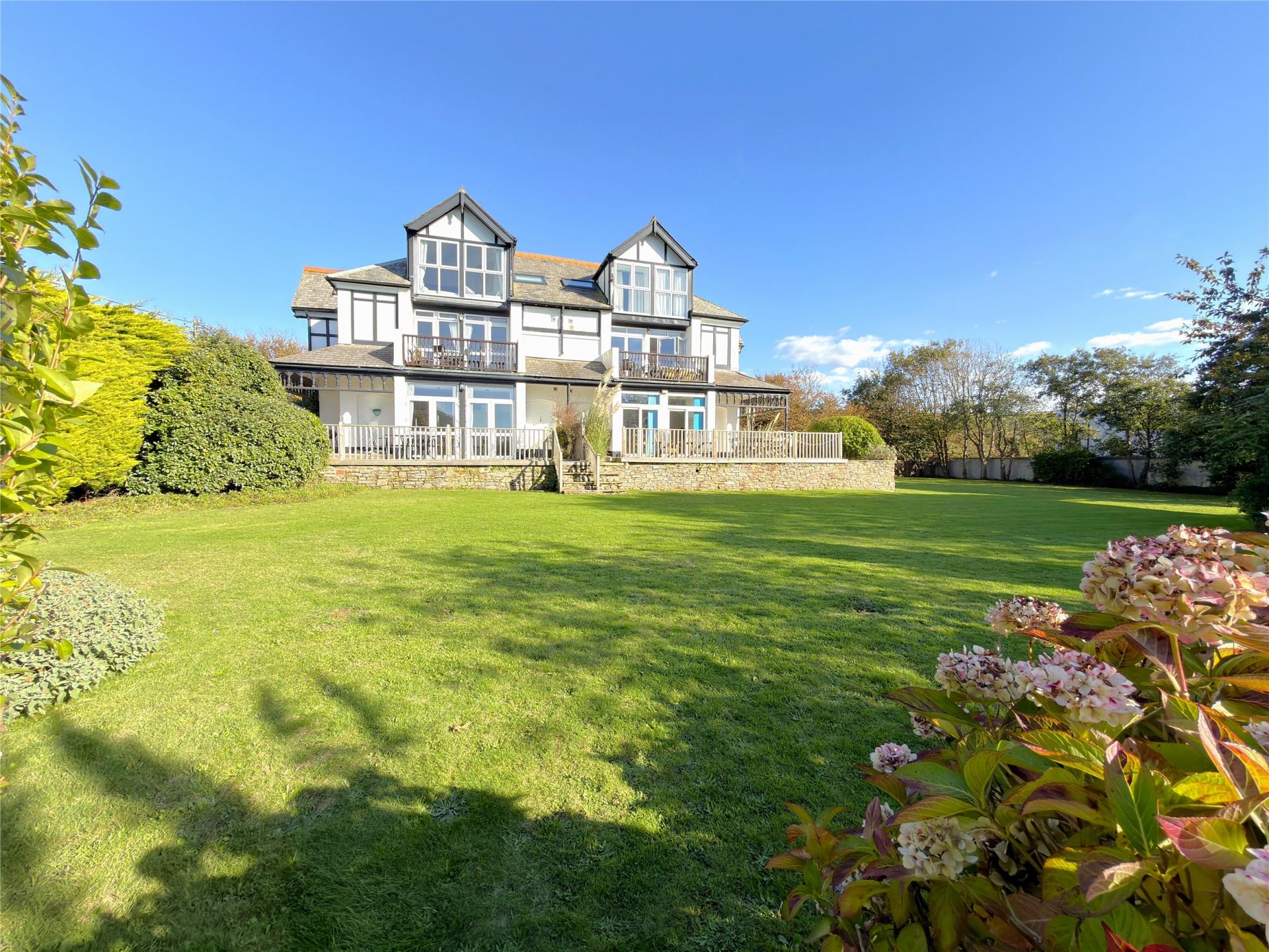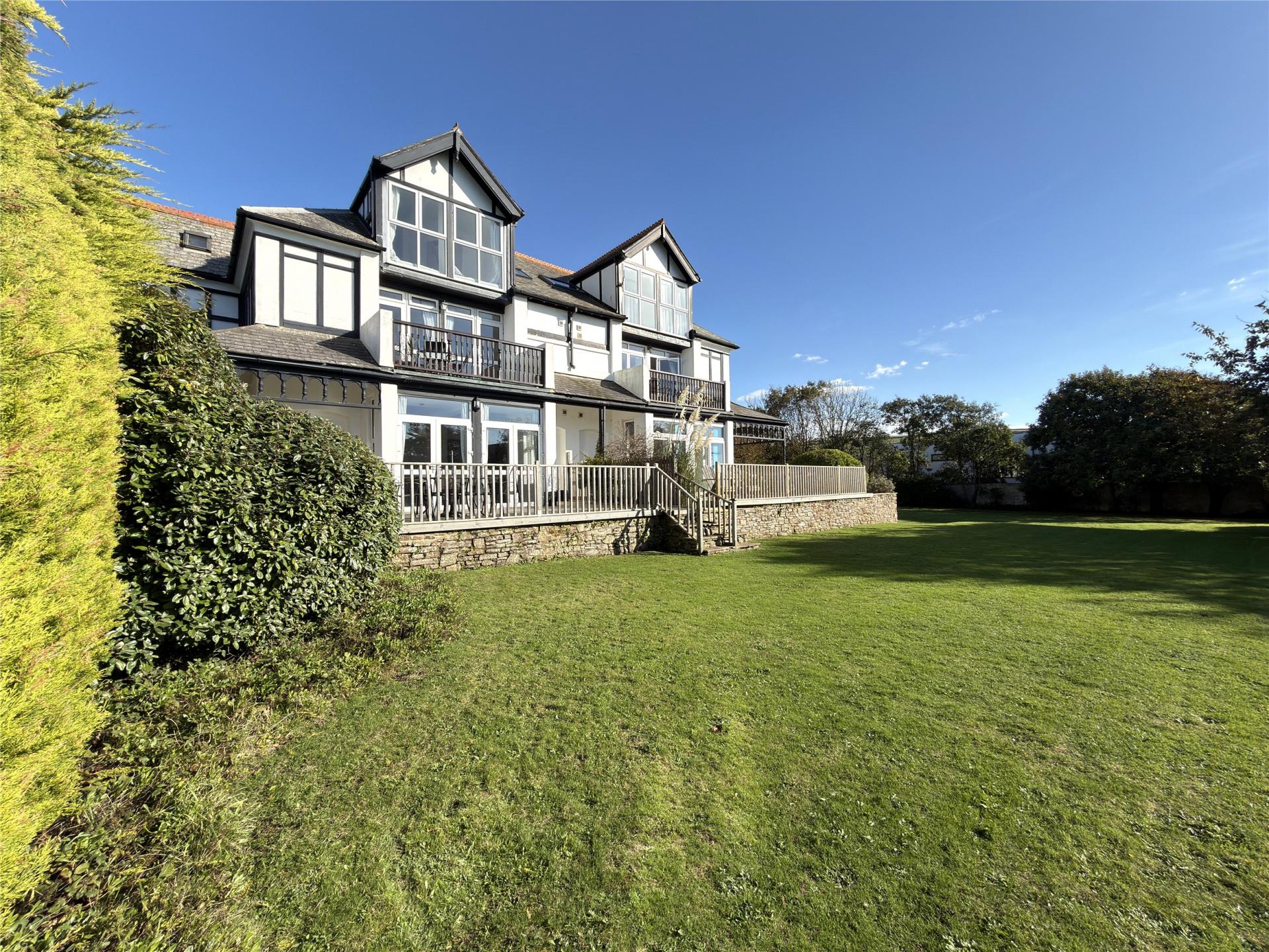 Outside to the front are two designated parking spaces and gate to the large communal gardens. To the garden behind hedging Flat 5 has a useful shed for surfboards etc.