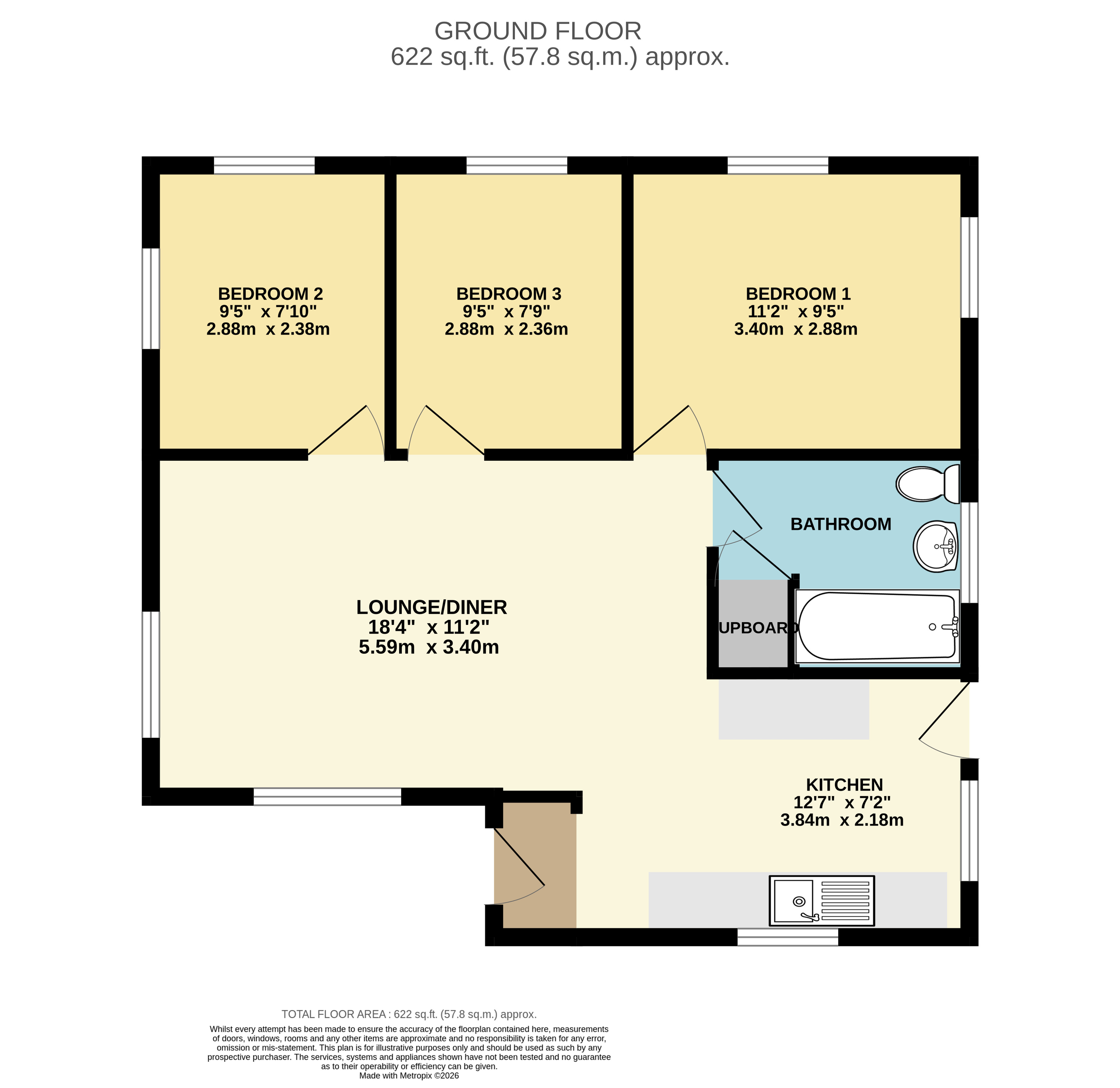 Bedroom 3 9'5" x 7'9" (2.87m x 2.36m).