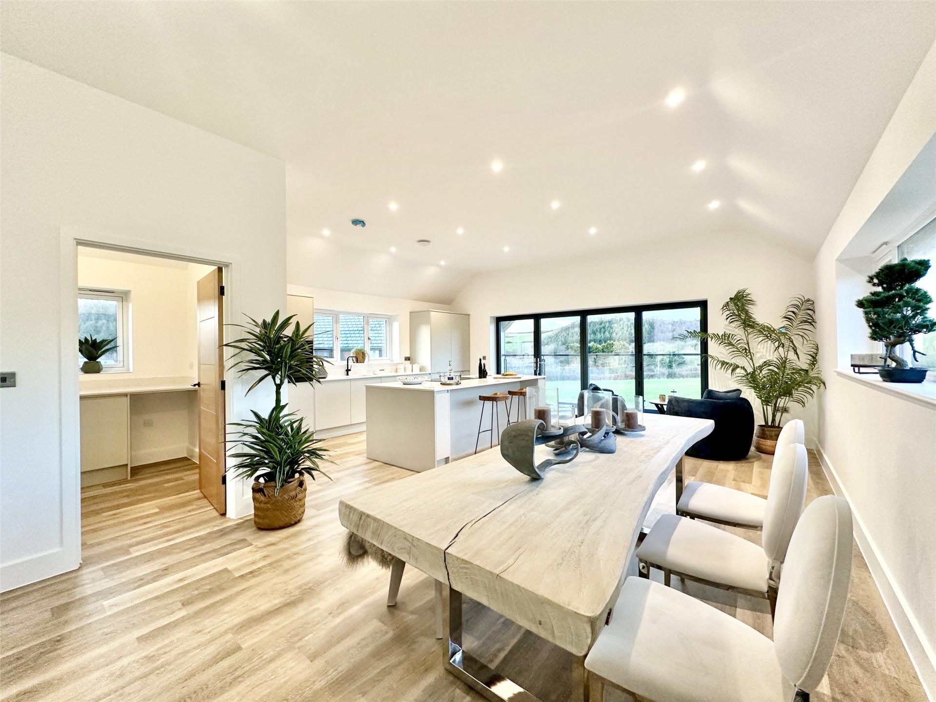 The heart of the home is the superb kitchen / dining / daytime living space – a warm, sociable environment perfectly suited to modern family life. There is ample room for a large dining table, a relaxed snug or sofa area, and everyday family use, while doors open directly onto the rear garden to create a seamless connection between indoor and outdoor living. Whether hosting friends, supervising homework or enjoying summer evenings spilling out onto the terrace, this space is designed to be lived in and enjoyed.