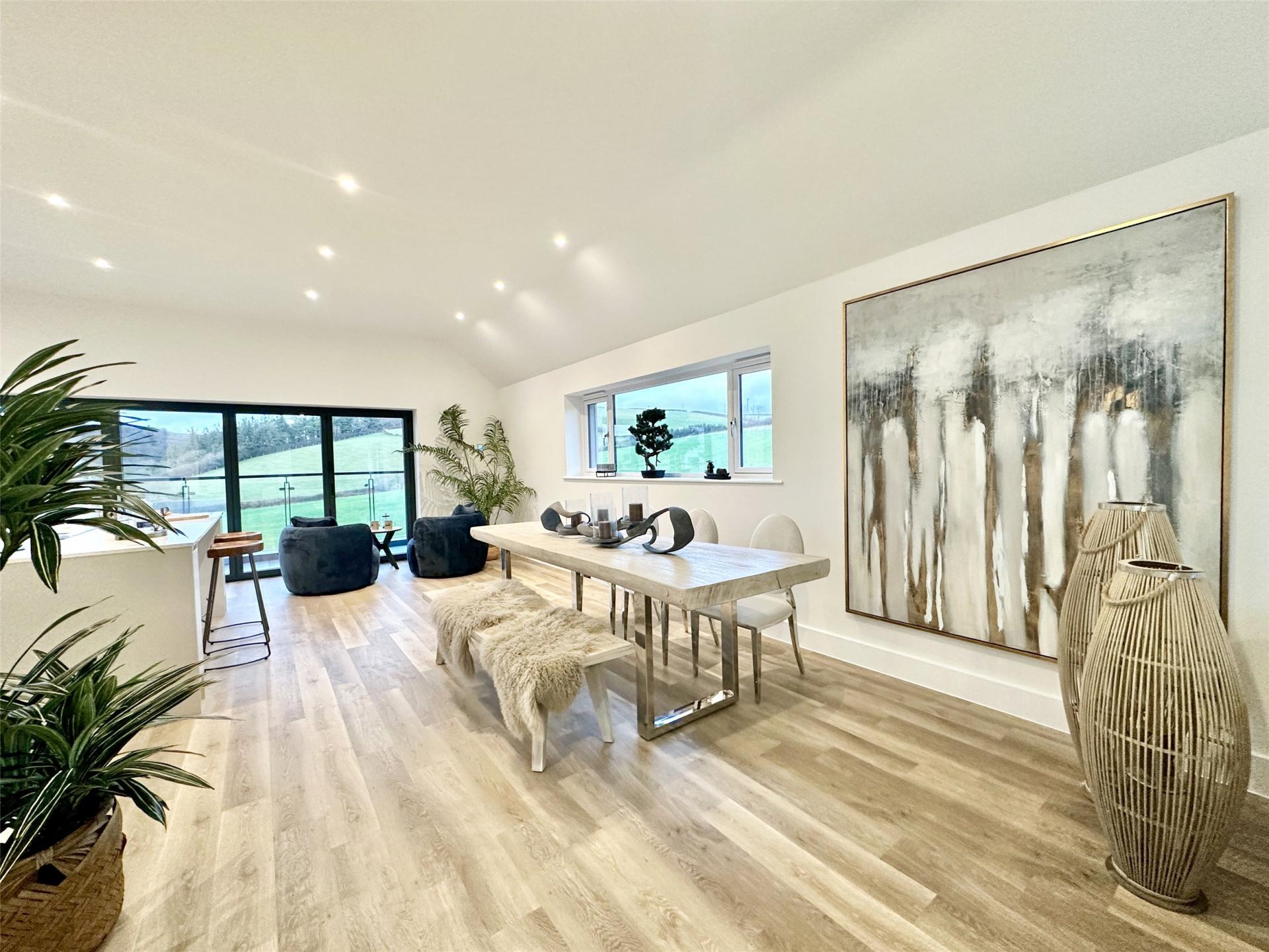 This room is flooded with natural light thanks to extensive glazing and an abundance of glass, creating a space that feels both expansive and uplifting. It is ideal for entertaining, socialising or simply enjoying everyday life with a constantly changing countryside backdrop.