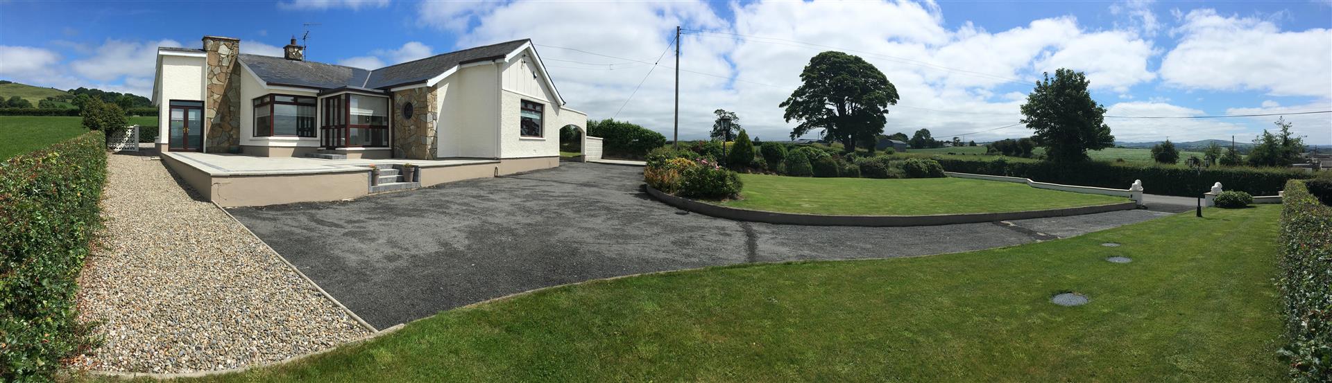 A delightful country property set on a magnificent site with neatly manicured lawns and mature flower beds. The accommodation is bright with spacious lounge and dining overlooking the lawns and open countryside. The property benefits from oil fired central heating and has a detached garage.