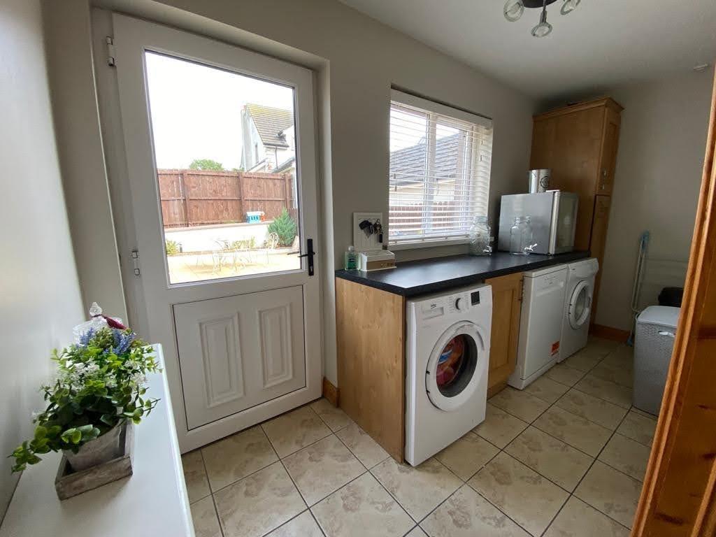 Plumbed for washing machine, space for tumble dryer, tiled floor.