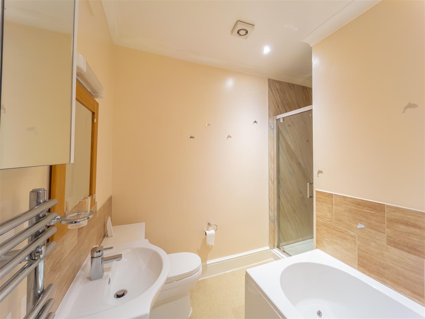 Family Bathroom - 2.59m x 1.96m (minimum) plus cubicle 1.02m x 0.71m - With suite comprising of a spa bath with central taps and tiled surround, wall mounted wash hand basin and concealed cistern W.C. set in vanity with storage and tiled splashback. Shower cubicle with aqua panelling and chrome effect domestic hot water shower, chrome effect ladder style radiator.