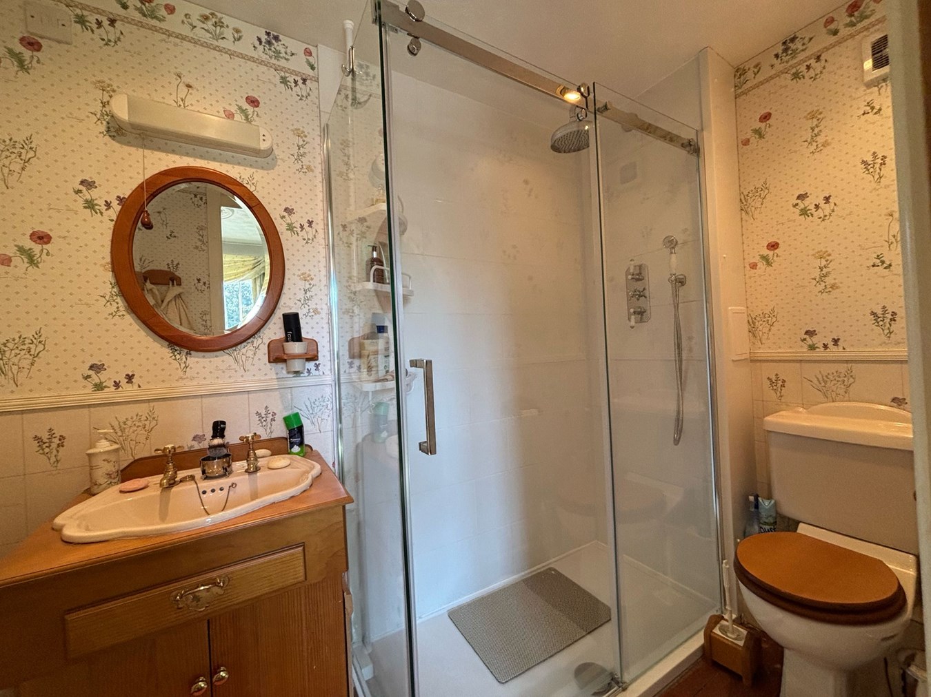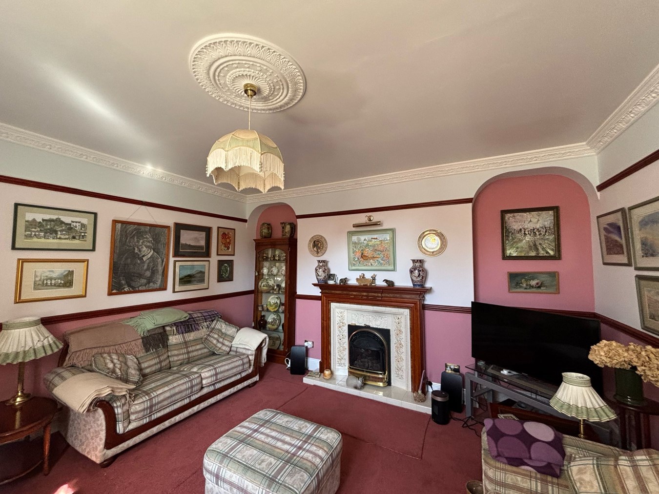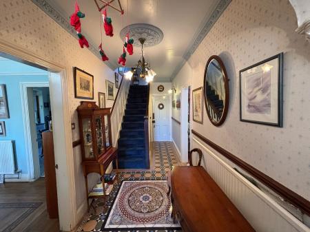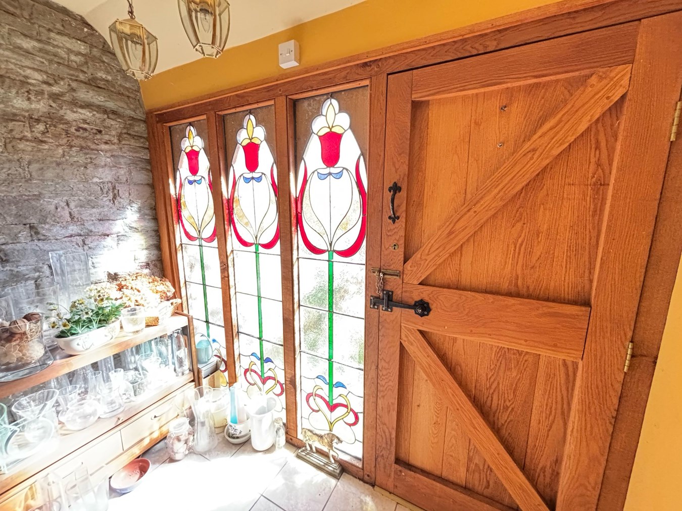 This is a fine-looking former school house with lots of character and spacious accommodation. Its features include a lovely oak front door, leaded and coloured glass screen, superb patterned tiled floor in the hall, some original fireplaces, coving and dressed stone front elevation. It was built in 1875 and the accommodation downstairs comprises of two good sized living rooms, a shower room, kitchen/breakfast room, utility and garden room. Upstairs are three double bedrooms, one with an en-suite shower room and another with built in wardrobes. The family bathroom completes the upstairs accommodation which has a cast iron roll top bath. Outside the front garden has rose beds, shrubs and a wooden greenhouse with a vine. The rear garden is paved, graveled and has a patio, boarders, greenhouse and two sheds.