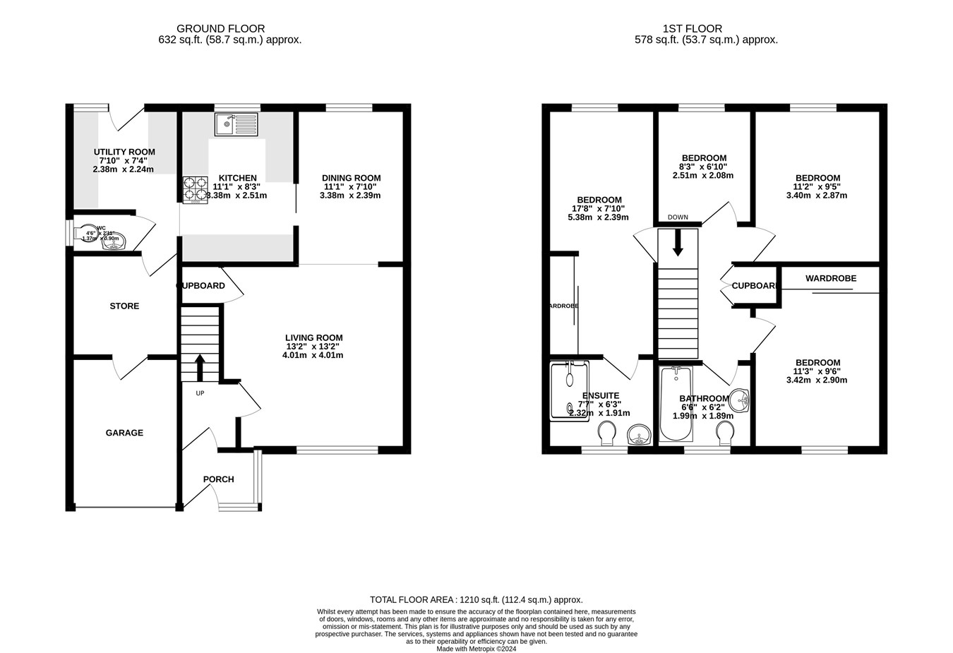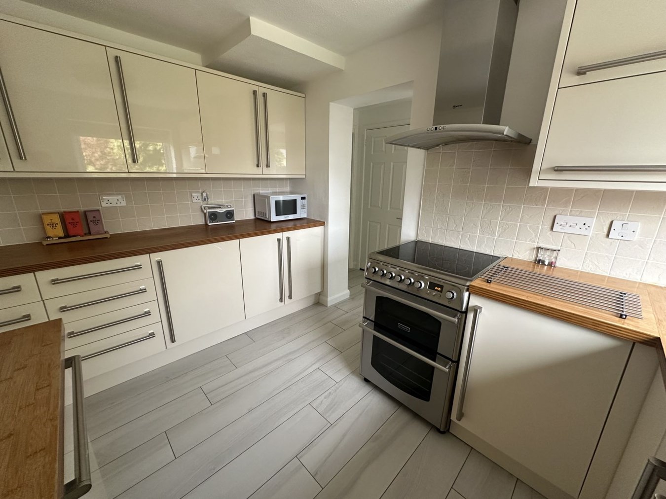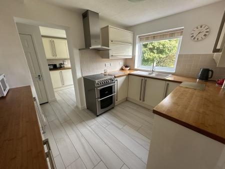 Upon entering, you're welcomed by a entrance porch and hallway leading into a generous living/dining room, ideal for family gatherings or relaxing evenings. The adjacent kitchen is a standout feature, with its stylish tiled floor, ample base and wall units, wooden worktops, oven and integrated appliances including a fridge, and dishwasher. A handy utility room provides plumbing for a washing machine and offers direct access to the rear garden, while the ground floor is completed by a convenient cloakroom and additional storage space. Upstairs, you’ll find four well-proportioned bedrooms, two of which feature built-in wardrobes, providing excellent storage. The master bedroom benefits from an en-suite shower room, while the other bedrooms share a modern family bathroom. The property also benefits from uPVC double glazing throughout and gas central heating.
