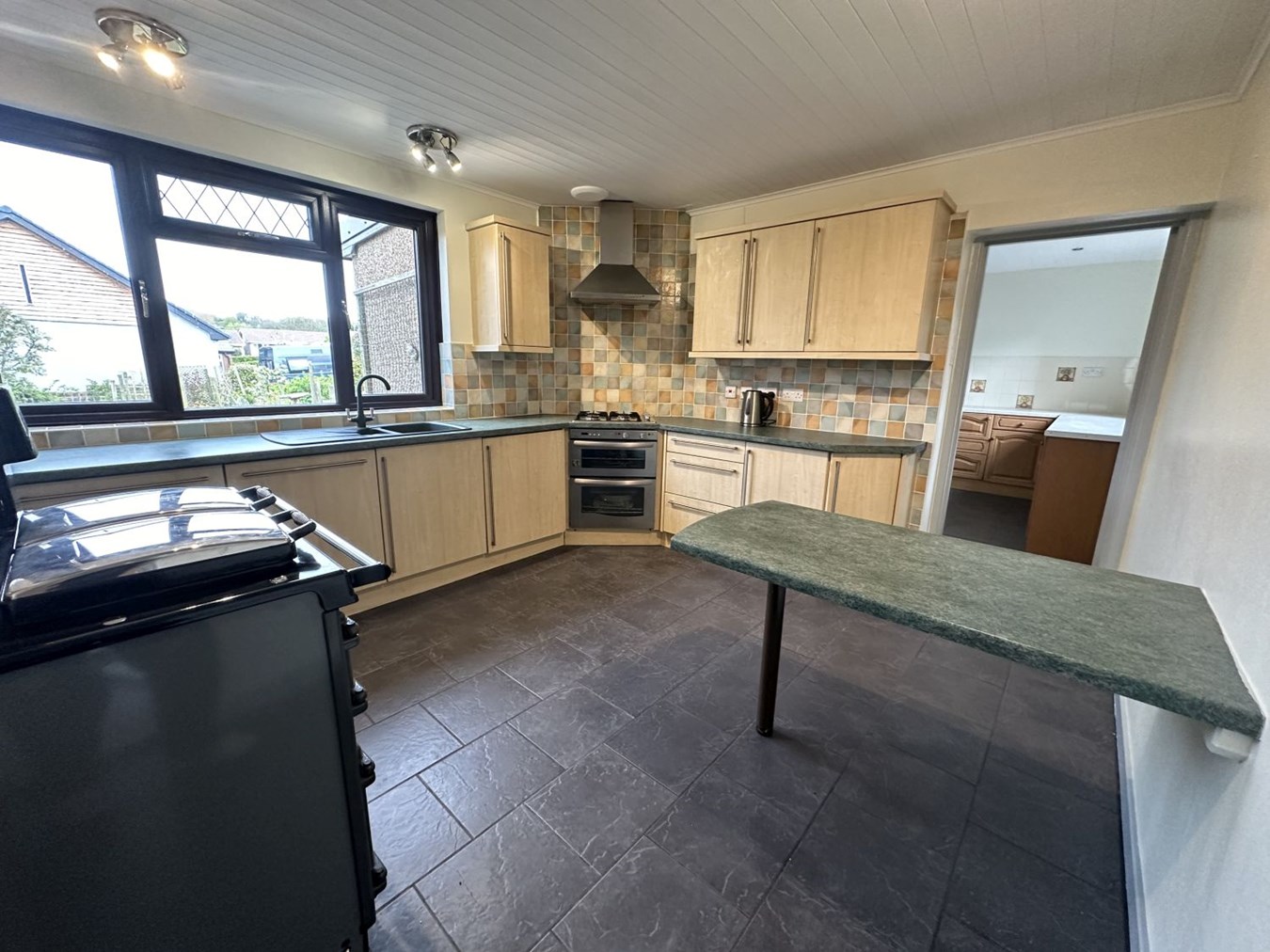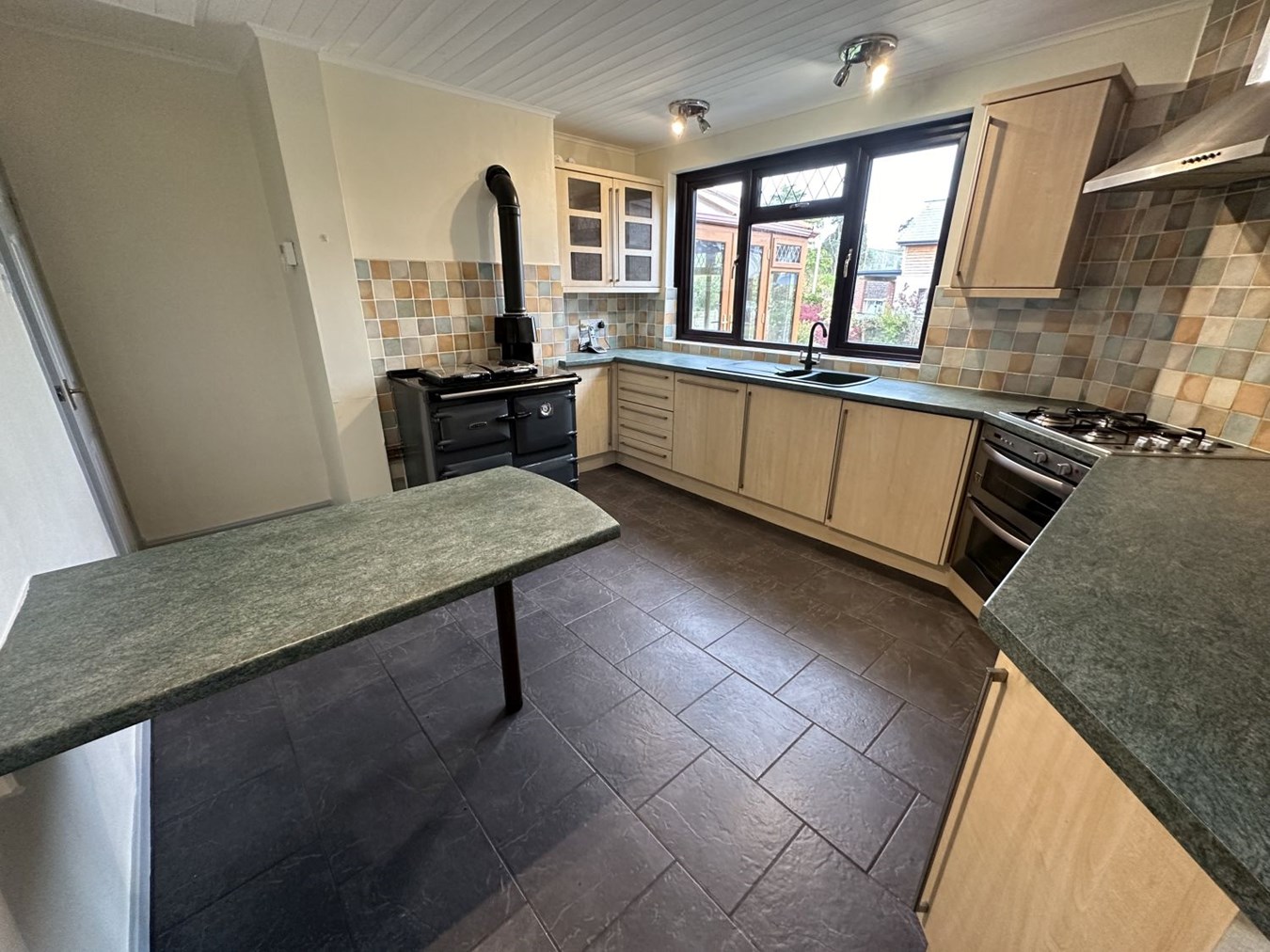 This lovely detached, three bed house occupies a generous plot and is a delightful family home. On the ground floor there is an entrance hall, good size living/dining room with patio doors opening into the conservatory. The kitchen/breakfast room has plenty of cupboard space including an integrated electric hob, fridge and dishwasher. It also has a Rayburn. Off the kitchen is a second kitchen area with more cupboard space. This leads through to a good size utility room with cloakroom, door to the garden and garage. Upstairs there are three bedrooms and a family bathroom with bath and separate shower. The property is in need of updating but with plenty of living space, has lots of potential.