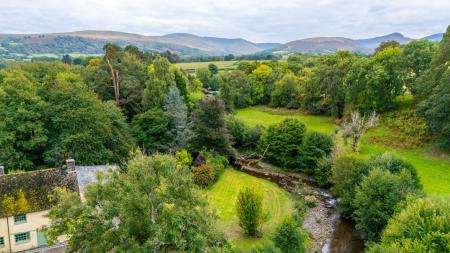 Steeped in history and full of charm, The Mill is a former water-powered corn mill and house dating back to the early 19th Century. This wonderful and spacious character home offers a rare opportunity to create something truly special, combining period features, generous living space and a magical setting on the banks of the River Afon Cynrig. On the ground floor there is a kitchen/breakfast room with tiled floor, a range of base and wall units, integrated oven and hob and an oil-fired AGA. The central dining room is a good size and enjoys exposed beams and an inglenook fireplace with wood-burning stove, creating an inviting space to gather for family meals. There is also a door to the front and stairs to the first floor. Adjacent to the dining room, the living room is another generous space, featuring a second wood-burning stove and parquet flooring. Upstairs, there are four bedrooms, a family bathroom and a separate shower room. The property offers scope to improve, allowing you to put your own stamp on and with no onward chain, viewing is highly recommended.