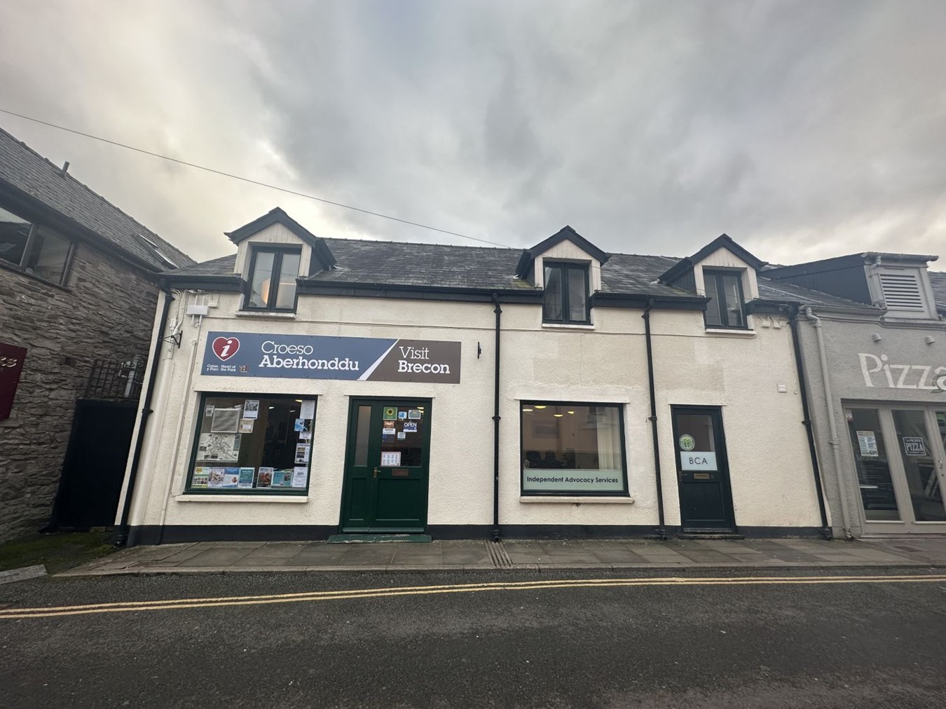 Left hand shop/office let for £6,000pa. 7.96 x 4.27 (34 sqm). Currently let to Visit Brecon.