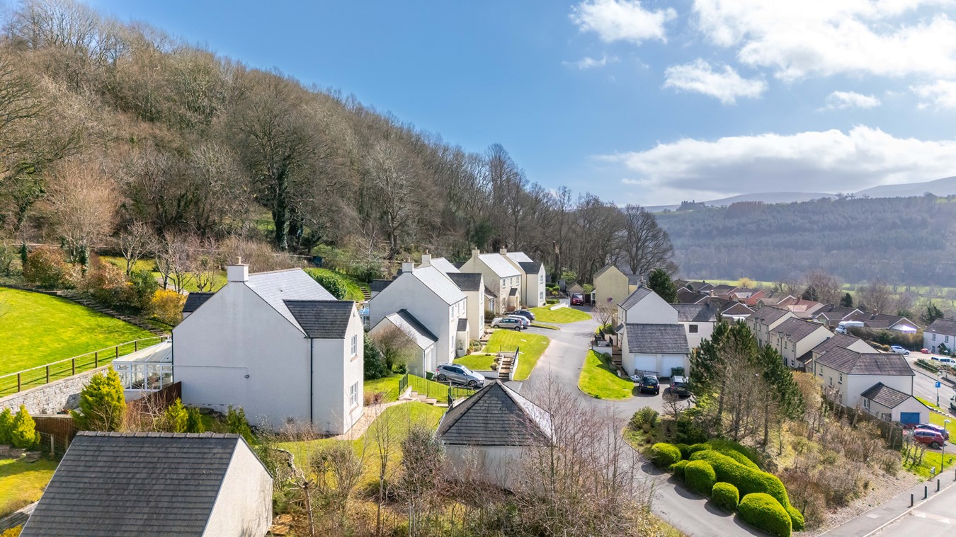 Situated in an elevated position, maximising the fabulous views across the town and towards the Brecon Beacons, this great detached home ticks all the boxes for modern family living. Offering spacious and versatile split-level accommodation, the property is ideally suited to growing families or those seeking flexible living space. The ground floor comprises an entrance hall, a convenient cloakroom and a living room accessed via French doors, creating a lovely sense of flow. There is also a separate office, perfect for those working from home. A short flight of stairs leads up to the well-appointed kitchen, fitted with an range of cupboards, a range cooker and integrated appliances including a dishwasher and fridge/freezer. From here, a separate dining room provides an ideal space for entertaining, with doors opening into the conservatory. On the first floor are four well-proportioned bedrooms, all benefiting from built-in storage. Two of the bedrooms feature en-suites, while the front-facing rooms enjoy outstanding views towards the Beacons. A family bathroom completes the accommodation. Externally, the property is equally impressive. To the front, a driveway provides ample parking and leads to a double garage, with steps rising to the entrance and lawned areas to either side. Side access leads to the rear garden, where a generous paved patio offers the perfect space for al fresco dining and entertaining. A large, sloping lawn and steps lead up to a further seating area at the top with decorative chippings, established shrub and flower borders and a timber garden shed. This is a decent area which could easily house a summer house or garden office if needed and is the perfect place to sit back and enjoy the stunning, far-reaching views.