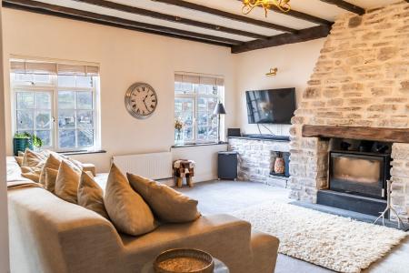 - large living/dining room with wood burning stove