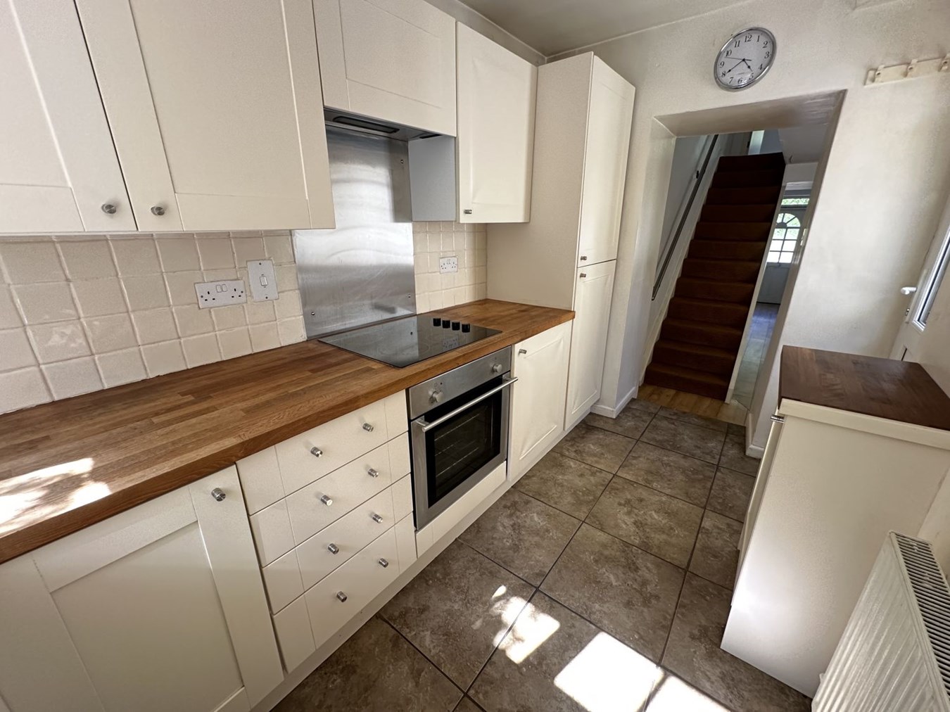 Located within walking distance of the town centre, this terraced townhouse offers plenty of potential and is available with no onward chain, making it an ideal first home or investment opportunity. Set over three floors, on the ground floor there is a living/dining room and a kitchen fitted with a range of wall and base units, integrated oven and hob, plumbing for a washing machine and a door opening to the rear. On the first floor, there are two bedrooms and a shower room, while the third bedroom is on the second floor alongside a bathroom, perfect for flexible family living or guest space. Outside, the property benefits from a terraced rear garden with chipping seating areas and established flower borders, accessed via shared rear access. With scope to update, this is a great opportunity to get on the property ladder or expand your rental portfolio.