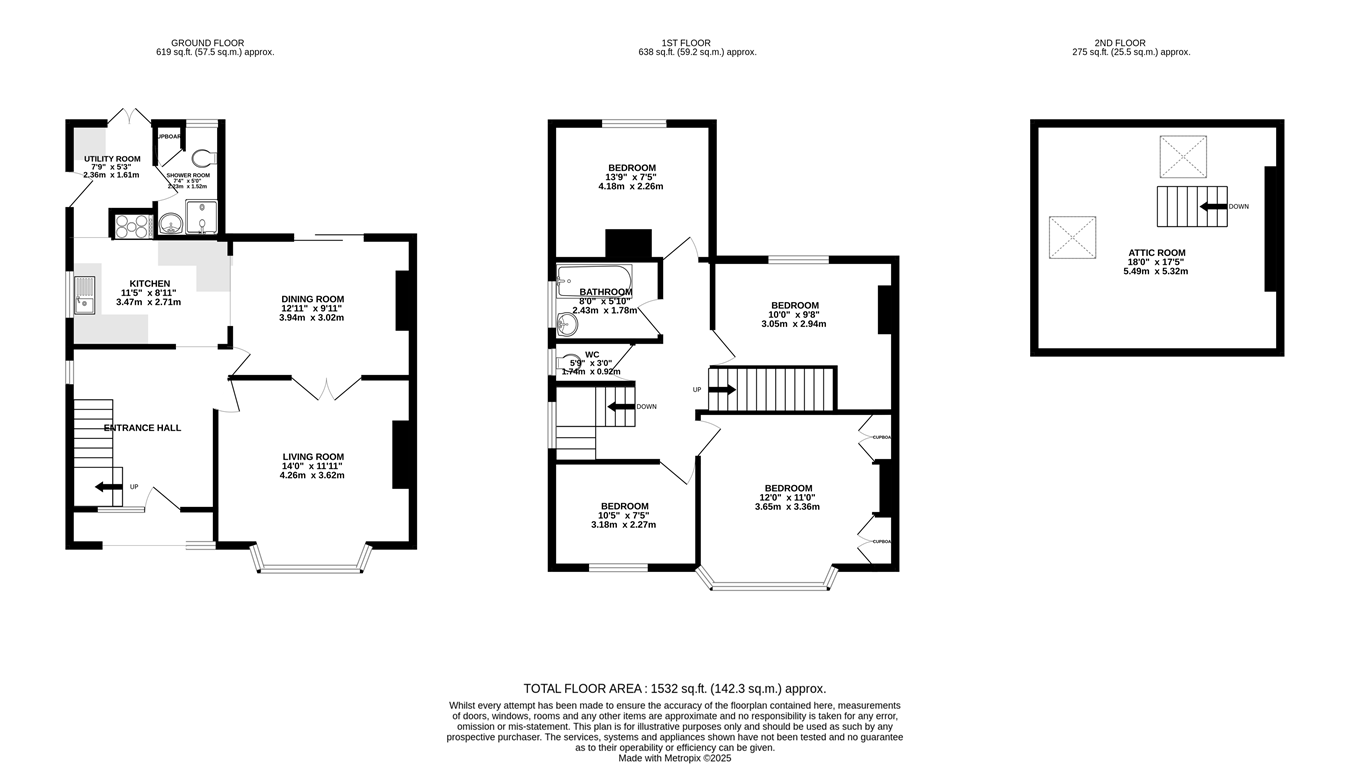 Situated in a desirable and convenient location, this charming, semi-detached house offers generous accommodation and makes a wonderful family home. The ground floor welcomes you with an entrance hall featuring wooden parquet flooring and a lovely stained glass window. The living room boasts a bay window, wooden flooring and a fireplace with an open fire, perfect for cosy evenings. Double doors open into the kitchen/diner, a fantastic area for family gatherings and entertaining. It enjoys a combination of wooden and tiled floors, a range of base and wall units, wooden and granite worktops, a range cooker, built-in dishwasher and tiled splashbacks. Patio doors flood the room with natural light and open onto the rear garden, seamlessly blending indoor and outdoor living. Also on the ground floor is a practical utility room with plumbing for a washing machine and an adjoining shower room. Upstairs, the first floor has four bedrooms, including a generous master bedroom with a bay window and built-in alcove cupboards. A family bathroom and a separate WC complete this level. The second floor features a versatile attic room with exposed roof timbers. Outside, the rear garden is a delightful space for relaxing and entertaining. It includes a decked seating area, patio and slate chipping sections with mature herbaceous borders. Steps lead down to a lawned area framed by shrubs and flower beds. There is also a garage