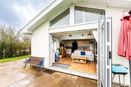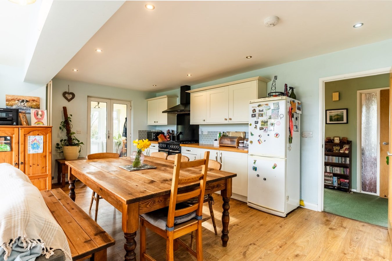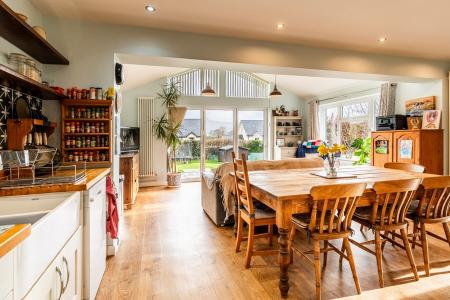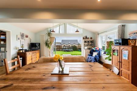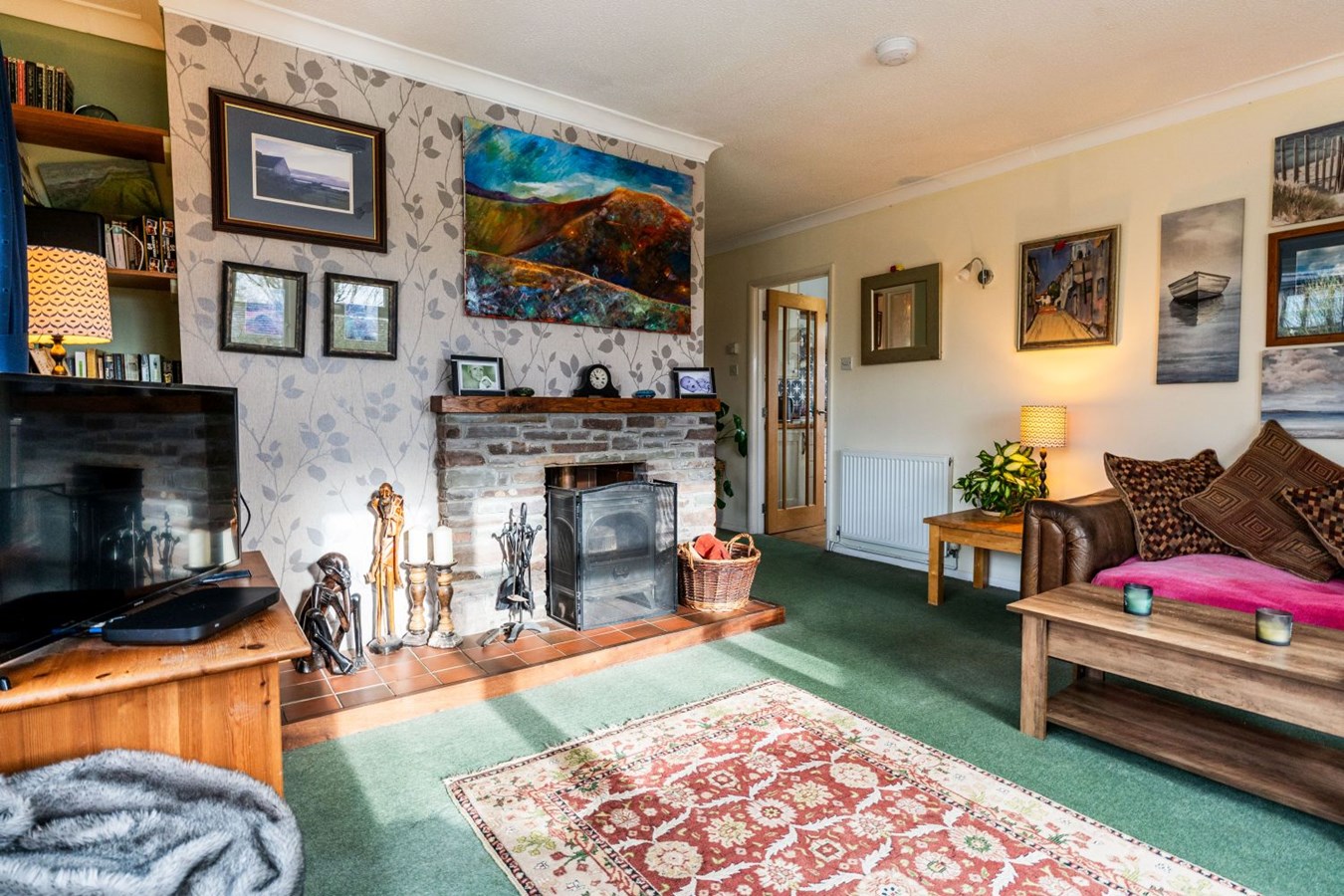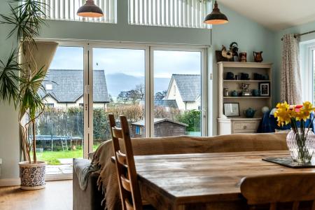 This attractive detached bungalow is centrally positioned within a sought-after village and offers versatile, well-proportioned accommodation, ideal for family living. The property sits within a generous plot, enjoying good-sized lawned gardens and far-reaching village views towards the surrounding mountains. A particular highlight is the impressive open-plan kitchen/living/dining room, flooded with natural light from dual-aspect windows and featuring bi-folding doors that open out to the garden, perfectly framing the outlook and creating a wonderful space for both everyday living and entertaining. A separate living room provides a cosy retreat, centred around a wood-burning stove, ideal for relaxed evenings. The accommodation further comprises of four bedrooms, three of which benefit from built-in wardrobes, along with a family bathroom and separate shower room. Practical features include a porch ideal for muddy boots and a useful utility room. The kitchen is well appointed with a good range of base and wall units, modern work surfaces, a range cooker, ceramic sink and space for a dishwasher. Outside, the property enjoys predominantly lawned gardens, complemented by a driveway, garage (7.23m x 3.04m) and a wooden summer house, providing excellent storage and additional recreational space.