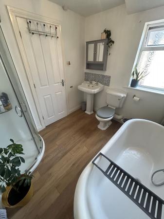 This two bed, end terrace has been attractively finished and extended to provide spacious and light living space. Ready to move straight in to, its accommodation comprises of a good size living room with feature fireplace, lovely kitchen/diner which has a range of cupboard space, integrated oven, hob, fridge/freezer and dishwasher. Upstairs there are two double bedrooms and a bathroom with rolltop bath and separate shower. Outside the garden is easily managed and benefits from rear access. It’s made up of a patio area, artificial grass and the garage. The property also benefits from gas central heating and uPVC double glazing.