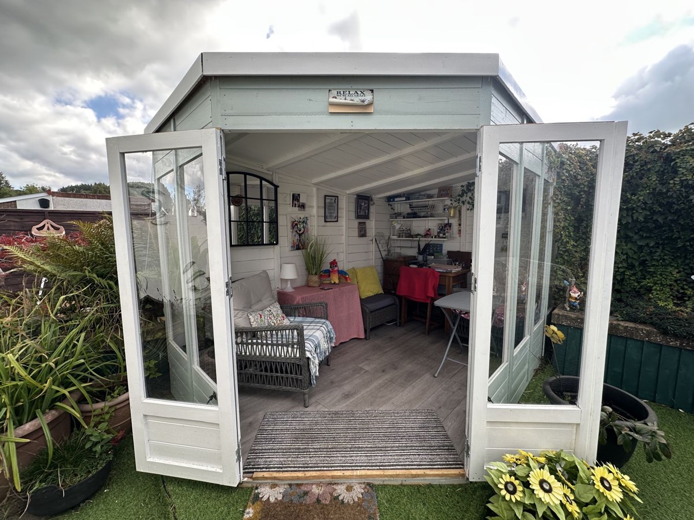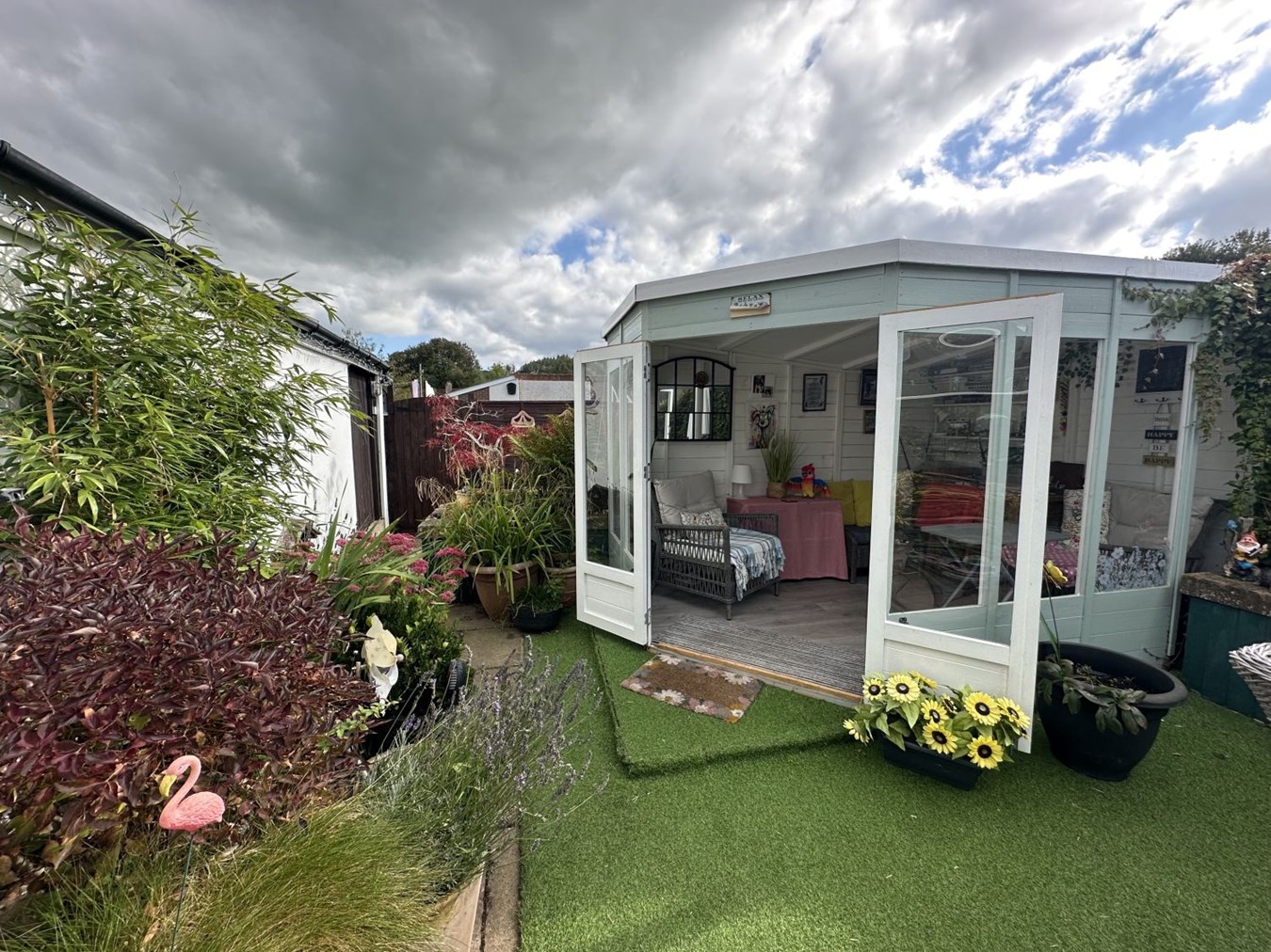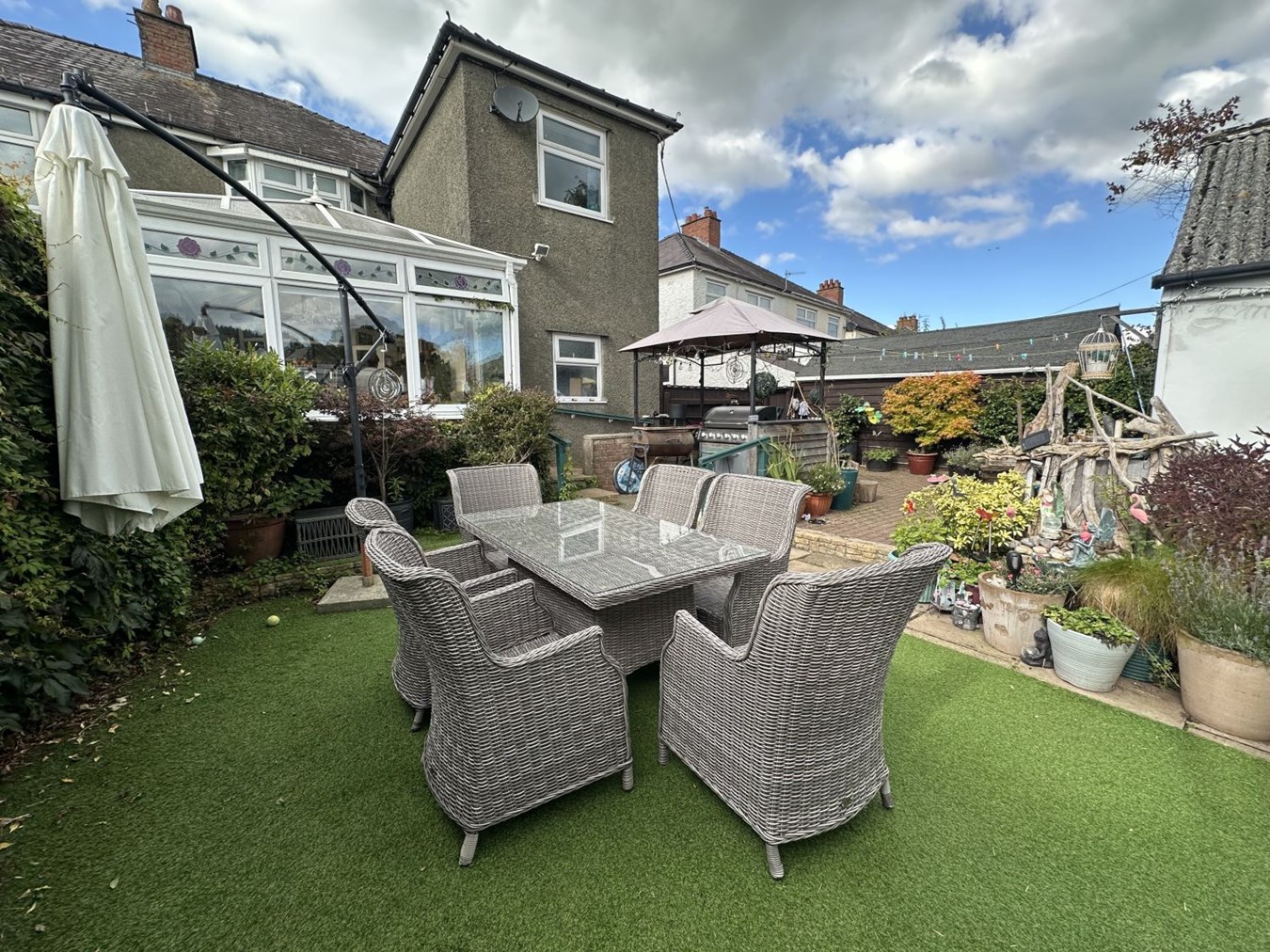 This great family home is situated in a popular area and ticks all the boxes. On the ground floor there is a spacious entrance hall with beautiful parquet flooring, original stained-glass windows and an attractive staircase. The living space is wonderfully open-plan, making it ideal for modern family life and entertaining. The area boasts a feature bay window, parquet flooring and a traditional picture rail, while the kitchen is well-equipped with a range of base and wall units, ceramic sink, worktops and integrated appliances including an oven, hob, microwave and dishwasher. Flowing seamlessly from the dining area, patio doors open into a large conservatory with charming exposed beams, the perfect spot to relax while overlooking the garden. Off the conservatory is a handy pantry, utility/store and a convenient cloakroom. Upstairs, a generous landing leads to four well-proportioned bedrooms, all benefitting from fitted wardrobes. The family bathroom completes the first floor and features both a bath and separate shower. Outside, the front garden includes a lawn with established shrub borders and a driveway shared with the neighbouring property. Side access leads to the rear garden, designed for both relaxing and entertaining, with a brick-paved area that can also be used for additional parking, artificial lawn, BBQ area and a lovely summer house. A double garage/workshop provides plenty of space for hobbies or storage and has an inspection pit. There is also an electric car charging point.