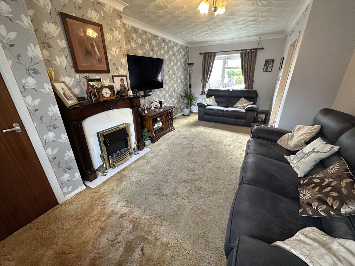 This semi-detached house is ideal family life, with well-proportioned rooms, a practical layout and easily managed gardens. On the ground floor there is an entrance hall leading to a spacious living room, ideal for cosy evenings together or entertaining friends. The kitchen/diner provides plenty of cupboard space and comes fully equipped with an integrated eye-level double oven, hob, fridge/freezer, dishwasher and washing machine, everything you need for busy family life. There’s also the convenience of a ground floor cloakroom. Upstairs, you’ll find three bedrooms, two with handy built-in storage, along with a family bathroom. Outside, the property benefits from a brick-paved driveway at the front, while to the side and rear the gardens are made up of a lawn, paved patio areas, garden store and shed.