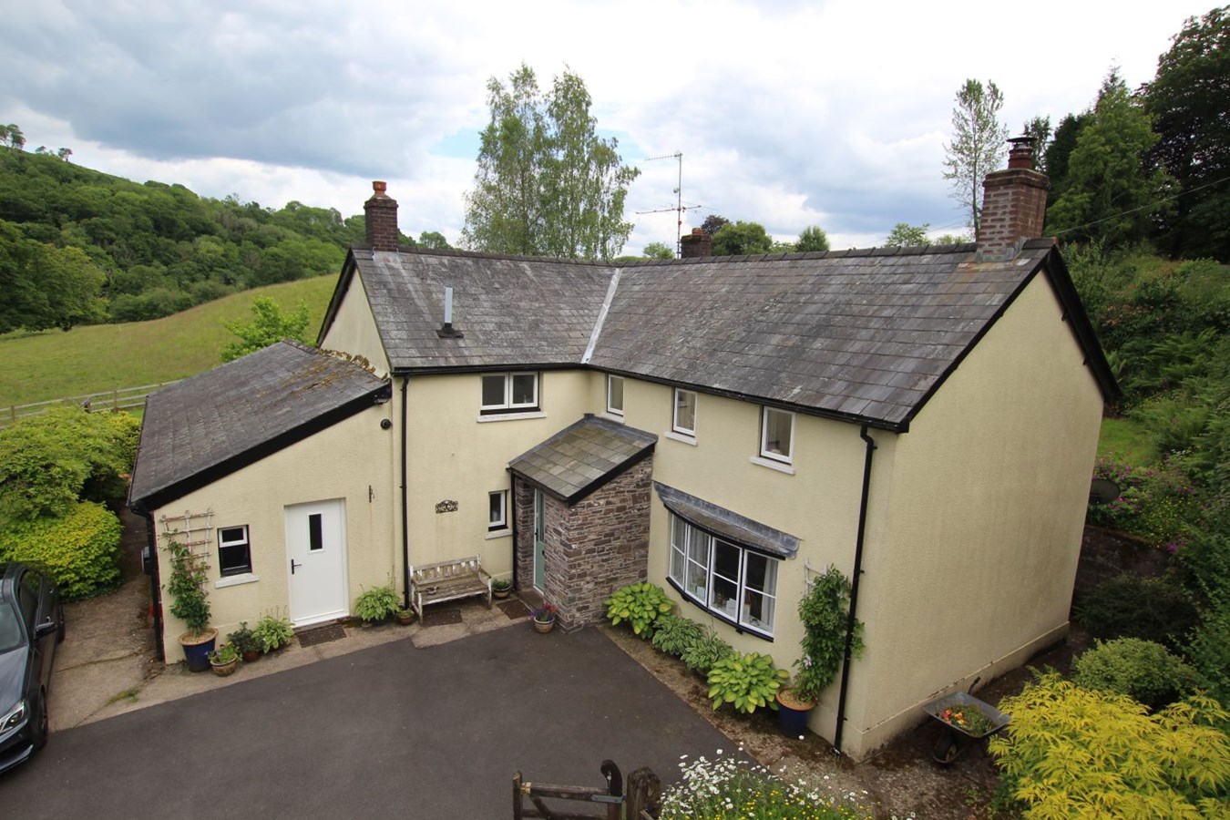 Nestled within a tranquil setting, this charming detached house offers an idyllic retreat for a growing family, combining characterful features with modern comforts. On the ground floor there is an entrance hall and to the right a good size, living room with exposed ceiling joists and a stone fireplace with a wood-burning stove, a perfect spot for unwinding on chilly evenings. The dining room features an impressive inglenook fireplace and is a great room for formal gatherings and family meals. From here, the space transitions into the kitchen/diner where there is a range of attractive units, a double sink, dishwasher and a range cooker. Completing the ground floor accommodation there is a versatile sitting room/study, cloakroom, shower room and a highly practical utility/mud room. Upstairs there four well-appointed bedrooms, plus a family bathroom. The property is set in approx 0.55 acres with a parking area at the front leading to a double garage. The gardens are predominantly lawned with a patio seating area, mature shrubs and a rockery. Backing onto farmland you enjoy delightful countryside views. Adjacent to the garden lies a small paddock, offering versatile opportunities for vegetable cultivation or perhaps keeping a few sheep. With its blend of character, comfort and outdoor space, this charming detached house presents a fantastic opportunity to embrace the joys of countryside living within a welcoming family home.