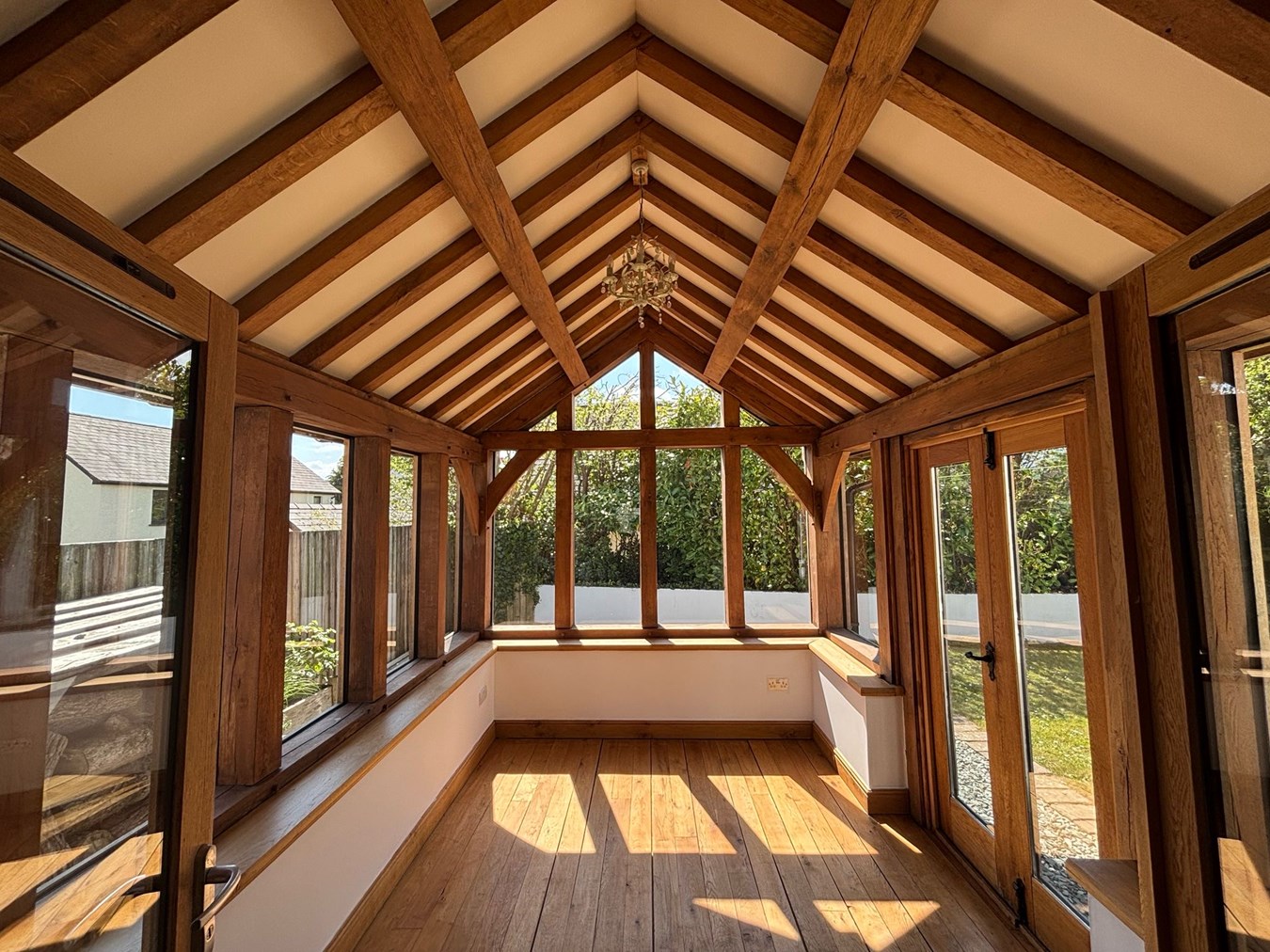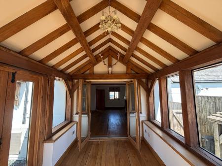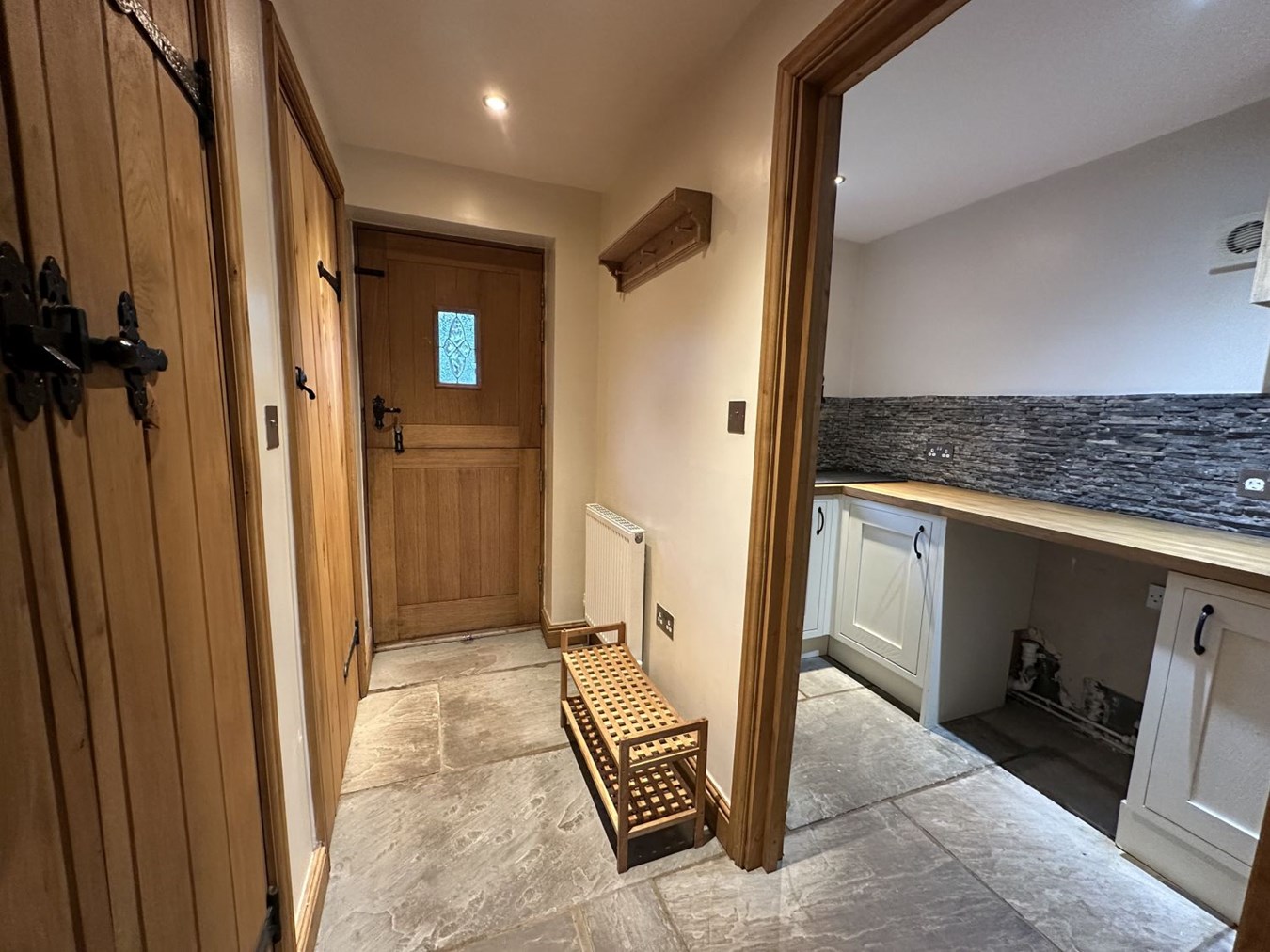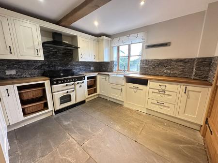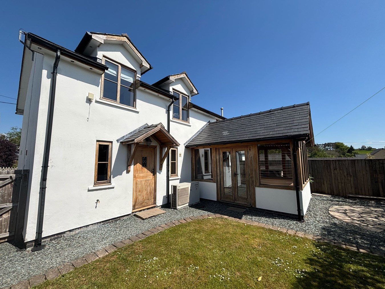 Step into this lovely, three bed detached home, built in 2013, where contemporary living meets timeless charm. Features include oak and flagstone floors, oak doors and a unique oak-framed garden room. On the ground floor there is an entrance hall leading into a welcoming living room complete with a cozy wood-burning stove—perfect for those chilly evenings. French doors open into the garden room, offering a tranquil space to relax and unwind. The country style kitchen features underfloor heating for added comfort, a range of units, wooden worktops, deep glazed sink, range cooker and built-in fridge/freezer and plumbing for a dishwasher for practicality. Adjacent to the kitchen, you'll find a rear hall leading to a generous storage cupboard, a useful utility room and cloakroom. Upstairs, are the three bedrooms, the master of which is en-suite and a family bathroom which features a freestanding roll-top bath, complemented by a stylish wooden base wash hand basin. Outside, at the side of the house is a brick-paved driveway leading to an enclosed, level garden made up of a patio, gravel paths and lawn. There is also a wooden shed, equipped with electricity. Not only does this home exude character, but it also offers modern eco-friendly living with air source heating, ensuring comfort and efficiency year-round.