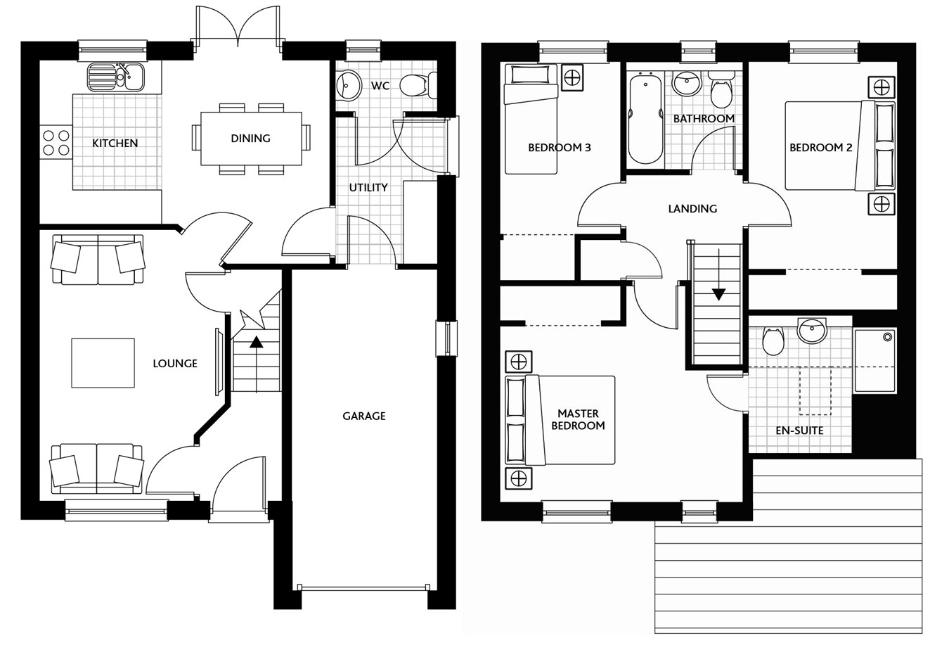- cloakroom, bathroom and en-suite