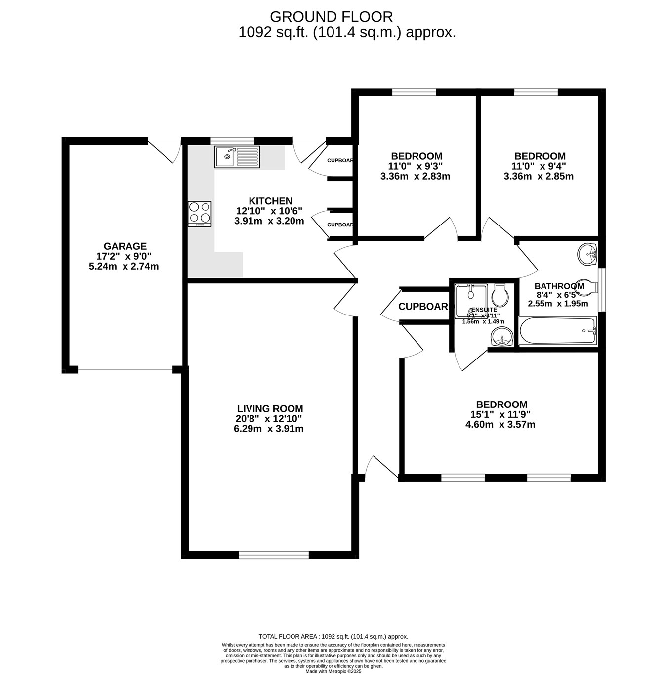 This neatly presented, detached bungalow occupies a good size plot on a quiet cul de sac. Its accommodation comprises of an entrance hall, good size living room, kitchen which has a range of base and wall cupboards, integrated oven and hob, built in cupboards and door to the rear garden. The master bedroom is spacious and benefits from an en-suite shower room, where the other two bedrooms are served by a family bathroom. Outside at the front there is a driveway leading to the garage which has an up and over door, power, lighting and plumbing for a washing machine. There is also a lawned area at the front and side. The pretty rear garden is level and made up of a paved patio, lawn and shrub and flower borders. The property is being sold with no onward chain and with scope to improve it is ready to put your own stamp on.