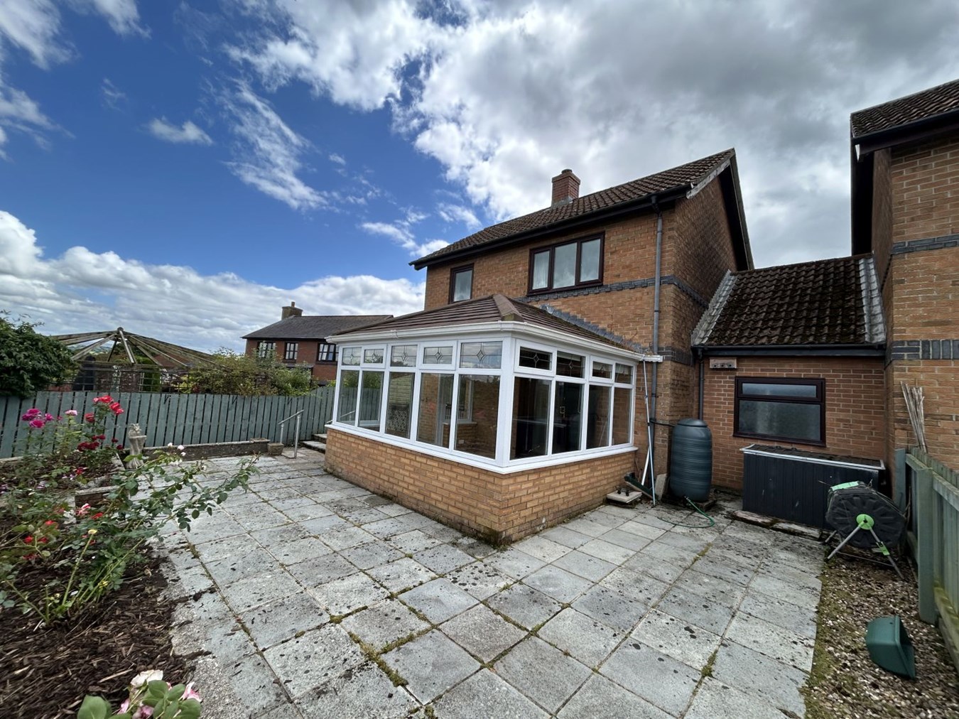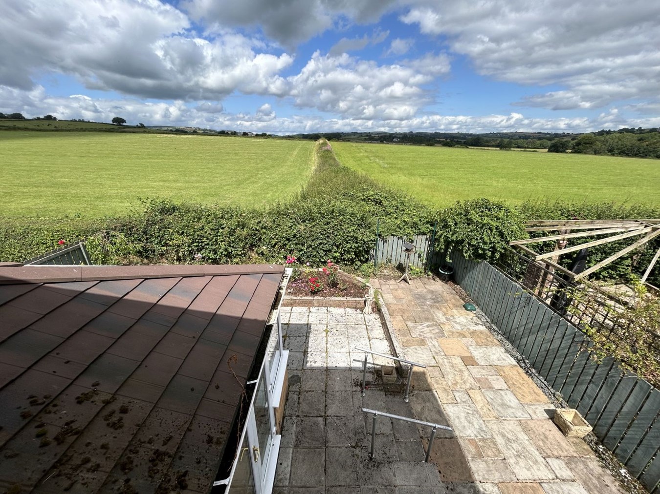 This lovely, two bed house is neatly presented and is situated in a quiet spot enjoying countryside views. An ideal starter home, its accommodation comprises of an entrance porch, kitchen which has modern units and an integrated oven and hob. There is also a living/dining room with patio doors opening into the conservatory and a useful utility and wet room. Upstairs are two bedrooms and a bathroom. Outside at the front there is parking, paved area, lawn and shrub borders. Side access leads to the rear garden which is easily managed and paved with shrub and flower borders. There is also a wooden garden shed. The property benefits from gas central heating, uPVC double glazing and has no onward chain.