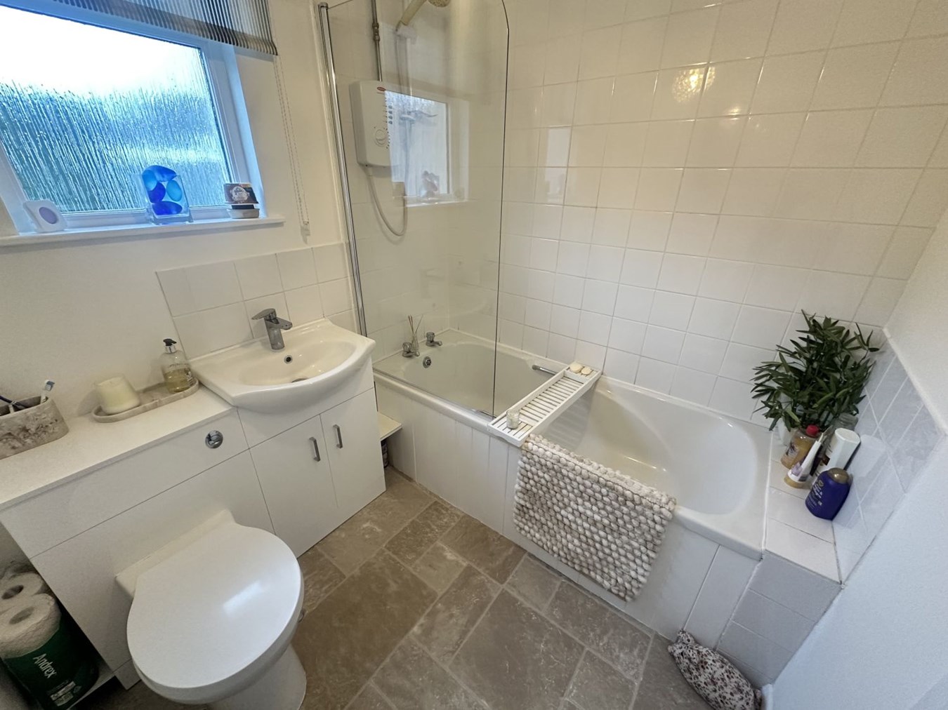 This attractive, detached three bed bungalow is set within a popular residential area and offers well-balanced, comfortable accommodation throughout. The living room is a welcoming space, featuring a wood-burning stove, wooden flooring and patio doors opening directly onto the front garden, allowing plenty of natural light. The kitchen is well equipped with a tiled floor, a range of base and wall cupboards, a range cooker, plumbing for a washing machine and a useful built-in storage cupboard. An opening leads through to the conservatory, which enjoys pleasant views over the rear garden and provides an ideal additional sitting or dining area. There are three bedrooms in total, two of which benefit from built-in wardrobes, along with a family bathroom. Outside, the property is approached via a driveway providing ample off-road parking and access to the garage. The front garden is laid mainly to lawn with established shrub borders, while the rear garden is of a good size, featuring a paved patio area, lawn and two garden sheds.