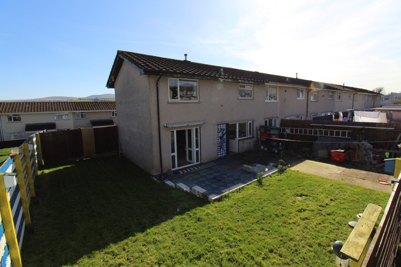 This end-of-terrace home presents an excellent opportunity for first-time buyers, young families or investors alike, offering well-proportioned accommodation and fantastic potential to personalise. The ground floor comprises an entrance hall, convenient cloakroom and a comfortable living room with patio doors opening directly onto the rear garden, creating a lovely connection between indoor and outdoor space. The kitchen/dining room is fitted with a range of base and wall units, benefits from plumbing for a washing machine and includes a useful understairs storage cupboard. Upstairs, there are three bedrooms and a family bathroom. While the property would benefit from some modernisation, it offers excellent scope for a purchaser to put their own stamp on it. Externally, the property enjoys good size gardens, predominantly laid to lawn with a paved patio area ideal for outdoor dining. Rear access adds further convenience.