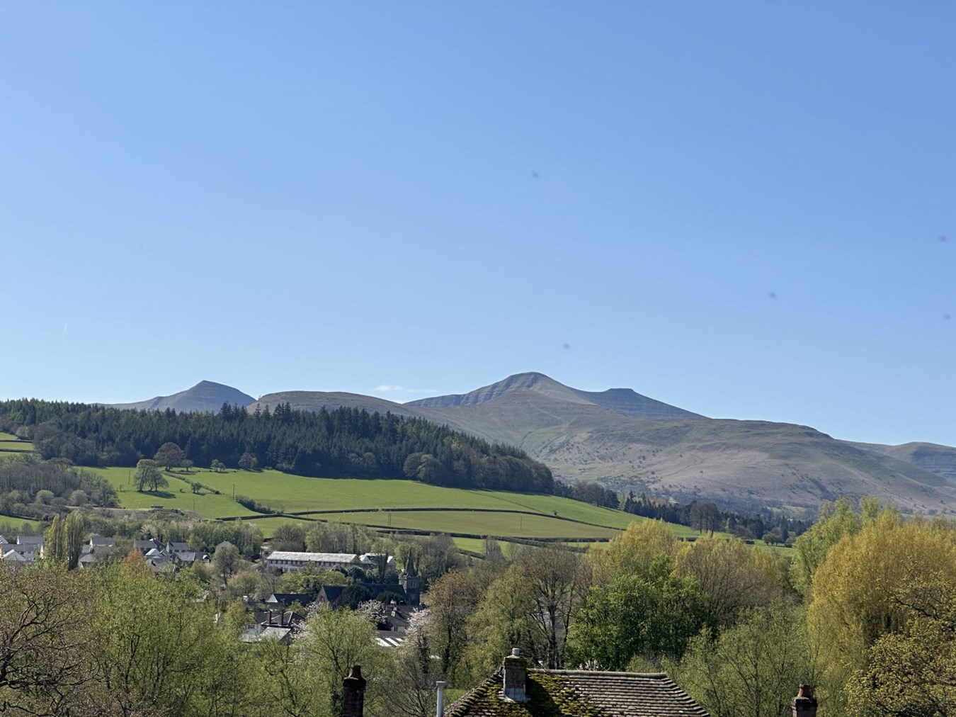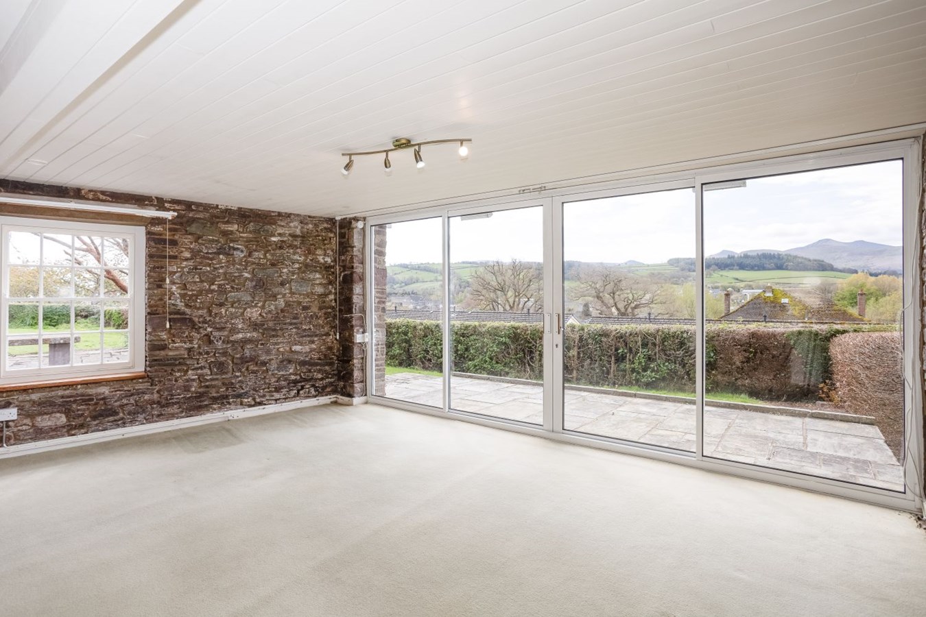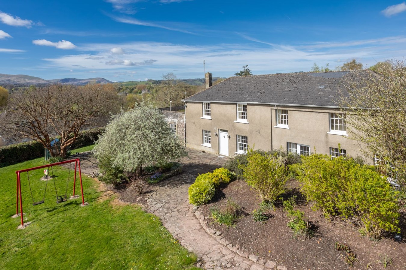 Fronting a charming courtyard development, this impressive, Grade II listed property boasts unparalleled views of the Beacons, creating a breathtaking backdrop for everyday living. Originally a farmhouse it enjoys delightful character features such as open fireplaces, sash windows with shutters, exposed beams and stone walls. A large and spacious property it provides flexible accommodation perfect for a growing family. On the ground floor there is an entrance hall, useful office/store room, utility and a convenient shower room. There are also three spacious reception rooms, including a cozy sitting room with a wood-burning stove, a formal dining room and a fabulous sun lounge that seamlessly connects to the kitchen. Sliding patio doors open onto the south-facing garden, flooding the room with natural light and offering panoramic views of the Beacons, creating an idyllic setting for relaxation and entertainment. The kitchen itself provides a range of cupboard space, a breakfast bar, integrated oven, hob and dishwasher. Ascending the staircase reveals four bedrooms with the master having patio doors opening onto a balcony, providing a serene spot to savor your morning coffee. Completing the first floor is an en-suite bathroom and two jack and jill shower rooms.
