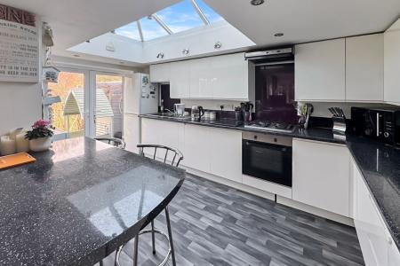 Nestled in the highly sought-after village of Bredhurst, this beautifully presented family home offers the perfect blend of rural charm, generous living space, and excellent connectivity to transport links, scenic countryside, and everyday amenities. Upon arrival, you are welcomed by a practical entrance porch—ideal for coats and shoes—leading into a spacious entrance hall. The hall features a useful laundry cupboard and a convenient ground floor W.C., adding to the home’s functionality. At the heart of the property is an exceptional open-plan living space, perfectly designed for modern family life. A spacious dining/family room—currently used as a games room—features a charming open fire, creating a cosy focal point. This flows seamlessly into a bright and airy lounge, enhanced by double-aspect windows and stylish bi-fold doors that open directly onto the impressive rear garden—ideal for both relaxing and entertaining. The contemporary fitted kitchen is thoughtfully designed with sleek units, a breakfast bar for casual dining, and a skylight that floods the space with natural light, with additional access to the garden. Upstairs, the home continues to impress with four generously sized double bedrooms, one of which benefits from fitted wardrobes. A modern and well-appointed family bathroom completes the first floor. Externally, the property boasts a substantial wrap-around garden of approximately 90ft, including the side area, with patio and lawn areas, a mature magnolia tree, seasonal wild bluebells, and miniature apple trees—perfect for outdoor dining and family activities. To the front, the garden is currently laid to lawn with potential to convert to a driveway (subject to planning). A charming pathway leads to the entrance, and the property also benefits from a garage en-bloc. Homes in this desirable village location rarely remain available for long. Contact the sales team at Greyfox Estate Agents Rainham today to arrange your viewing and avoid missing out on this fantastic opportunity.Ground Floor