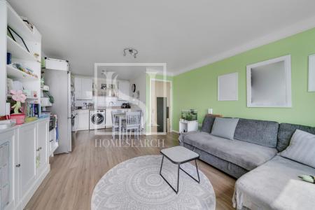 The property features a bright and spacious double bedroom, a contemporary bathroom, and a fully equipped kitchen with integrated appliances. The open-plan living area opens onto a sun-trapped private balcony, perfect for morning coffee or evening relaxation.