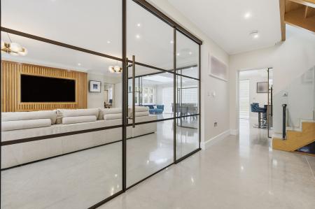 Step inside and discover a light-filled interior where space and style take center stage. The expansive open-plan kitchen and dining area forms the social heart of the home, a place to gather, cook, and entertain. With its high-specification finishes, generous proportions, and direct access to the garden, it’s a space that effortlessly adapts from everyday family life to sophisticated evening hosting. The adjoining living room offers a calm and inviting retreat, while the dedicated playroom and private study add flexibility for modern living.