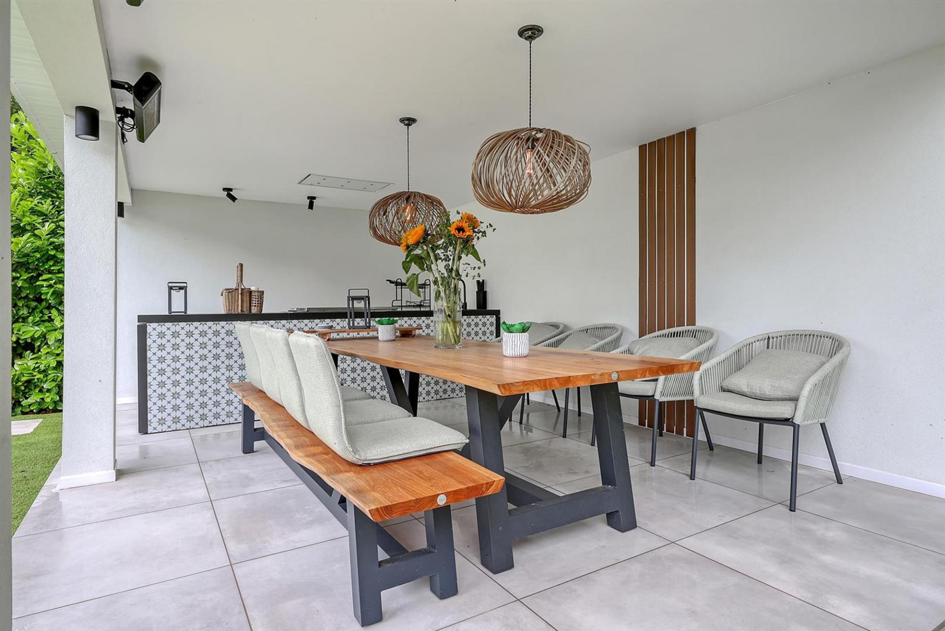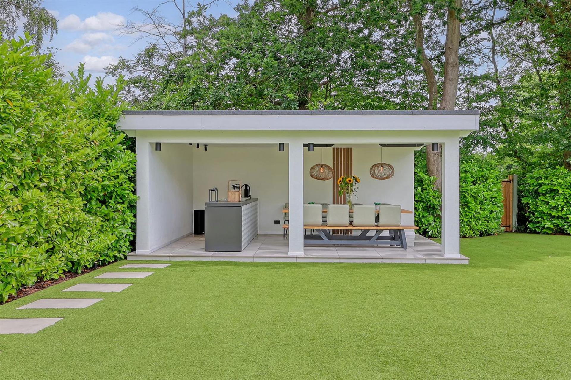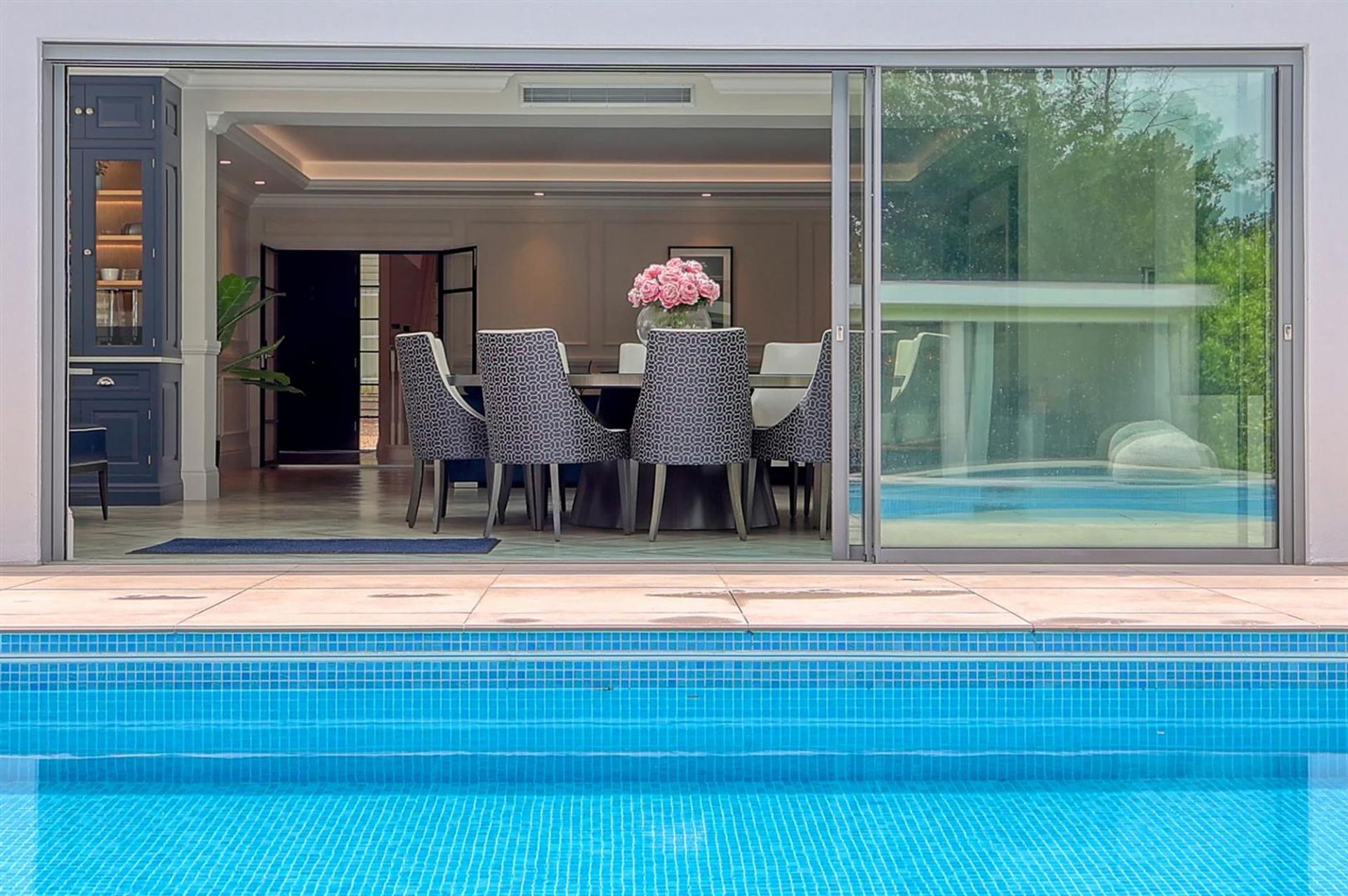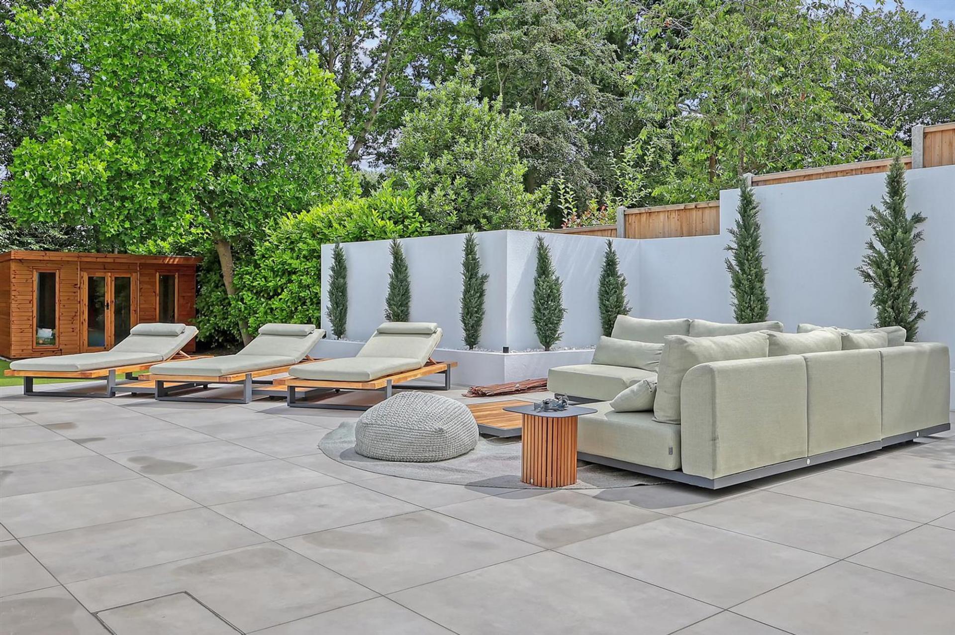 Externally the property is accessed via a secluded sweeping driveway offering ample parking to the front. With secure, gated side access to the rear garden which has been recently landscaped and now boasts a stunning heated swimming pool and sun terrace. You step down onto an artificial lawn which looks pristine all year round and leads to the outdoor kitchen entertaining area with fully equipped kitchen and covered seating area.