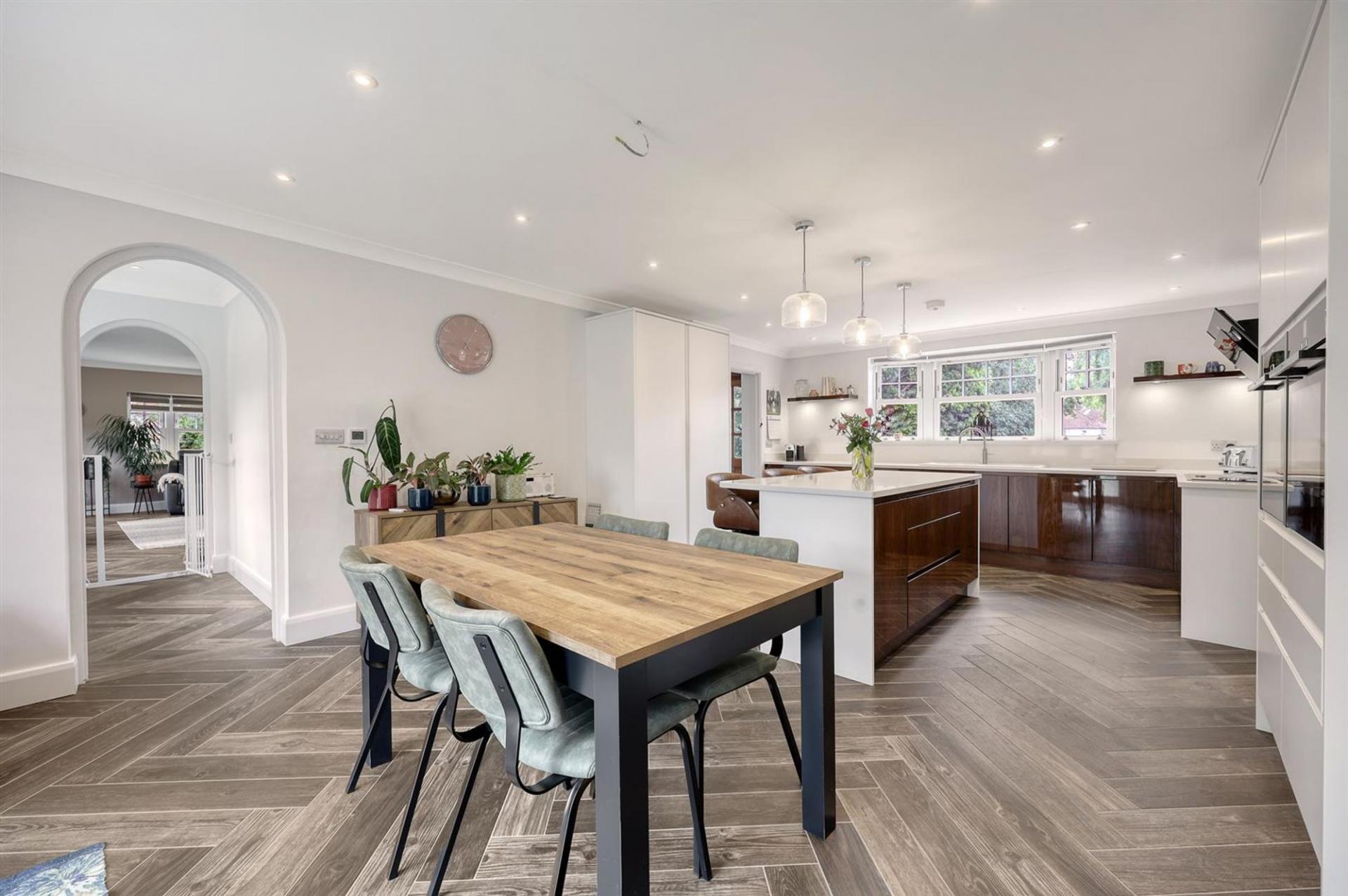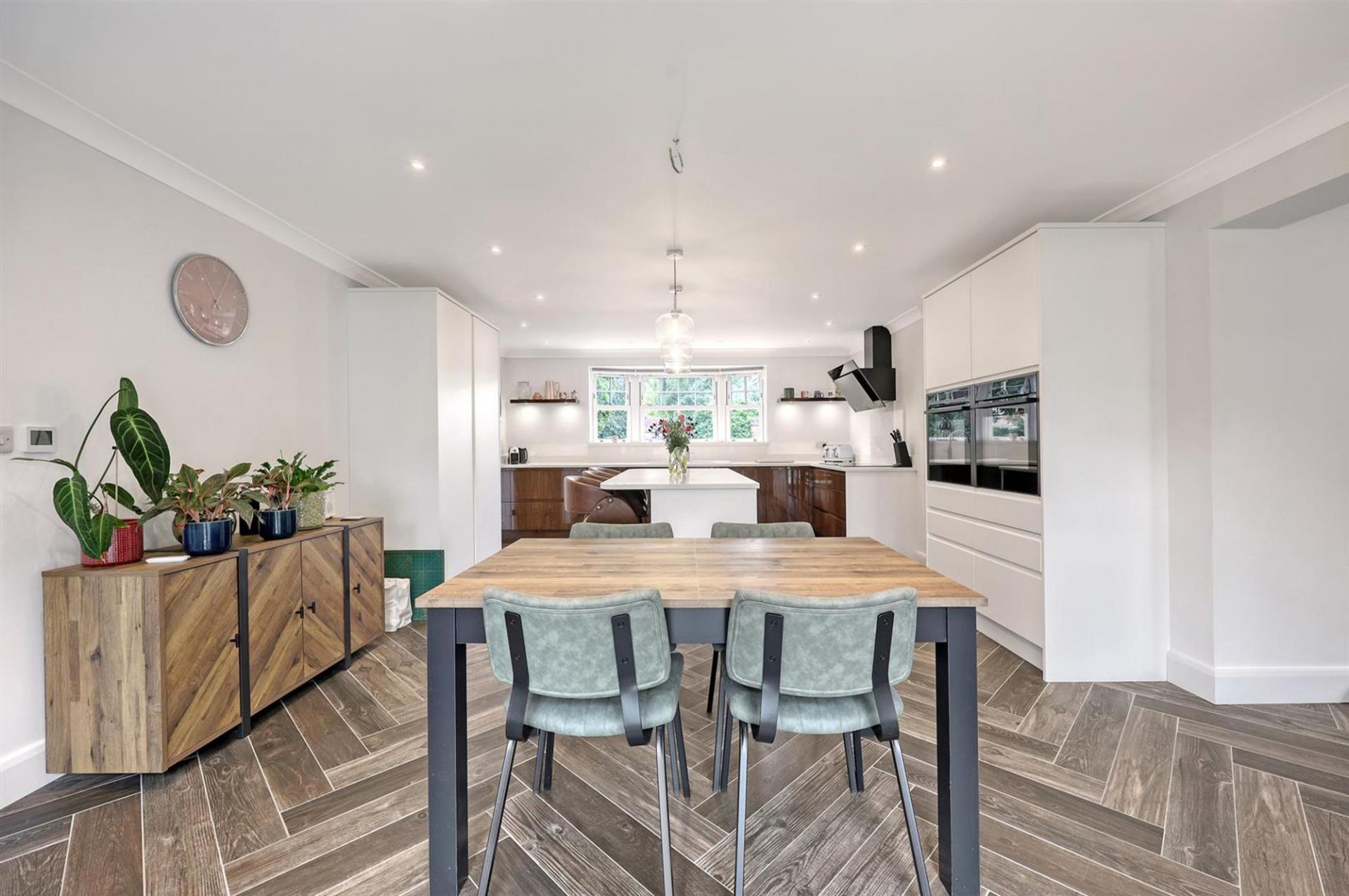 The home has been comprehensively upgraded throughout to an exceptional standard, featuring underfloor heating, premium finishes, and thoughtfully designed interiors ideal for both family living and entertaining. The stunning bespoke kitchen is fitted with high-end Neff appliances and opens seamlessly onto the dining and living areas, with French doors leading to the garden and pool terrace. Upstairs, the master suite enjoys a Juliet balcony, fitted wardrobes, and a luxurious en-suite with underfloor heating. The additional bedrooms are equally well-appointed and complemented by beautifully designed bathrooms.