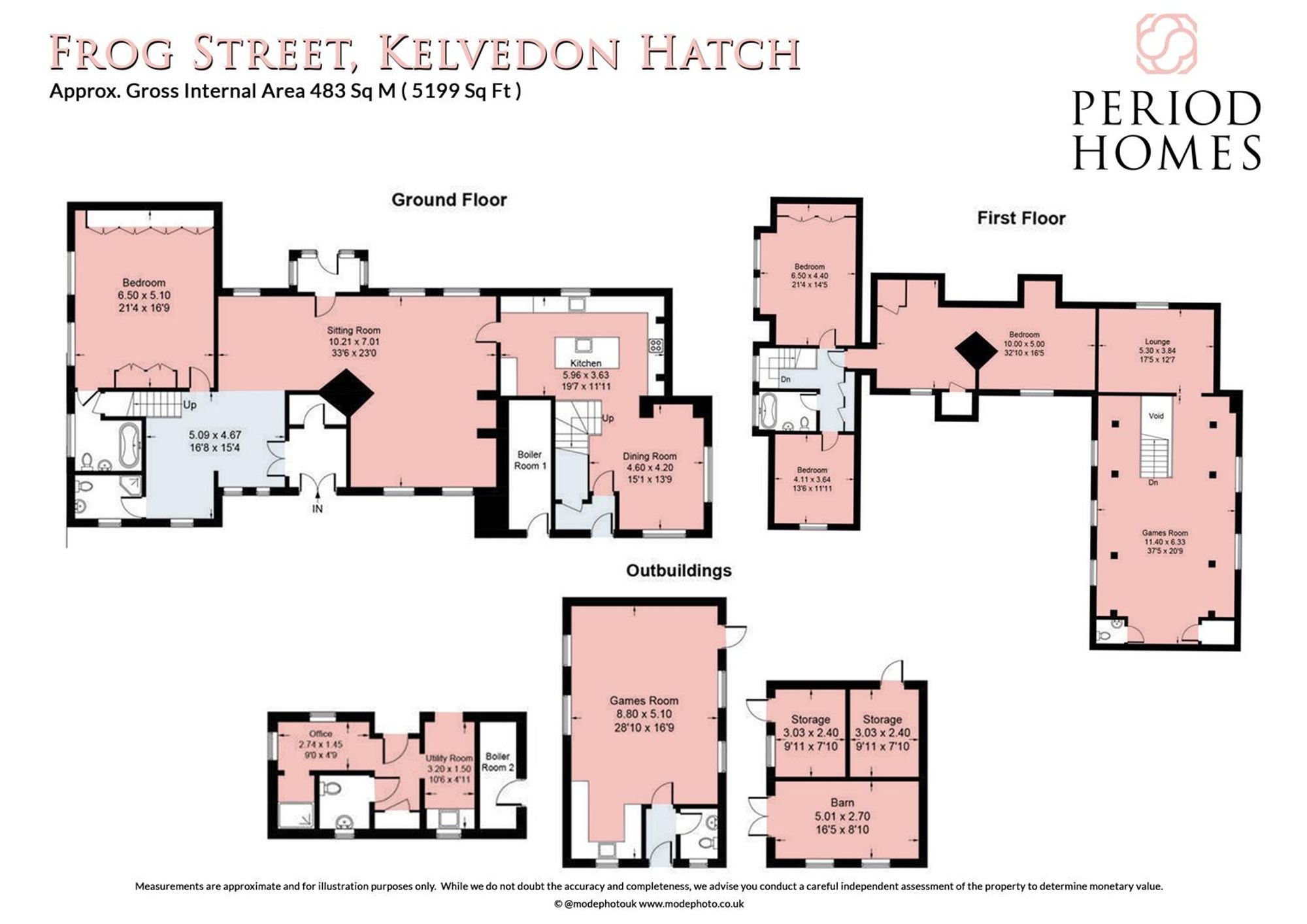 - Detached home office, games room/annex, and barn with storage rooms