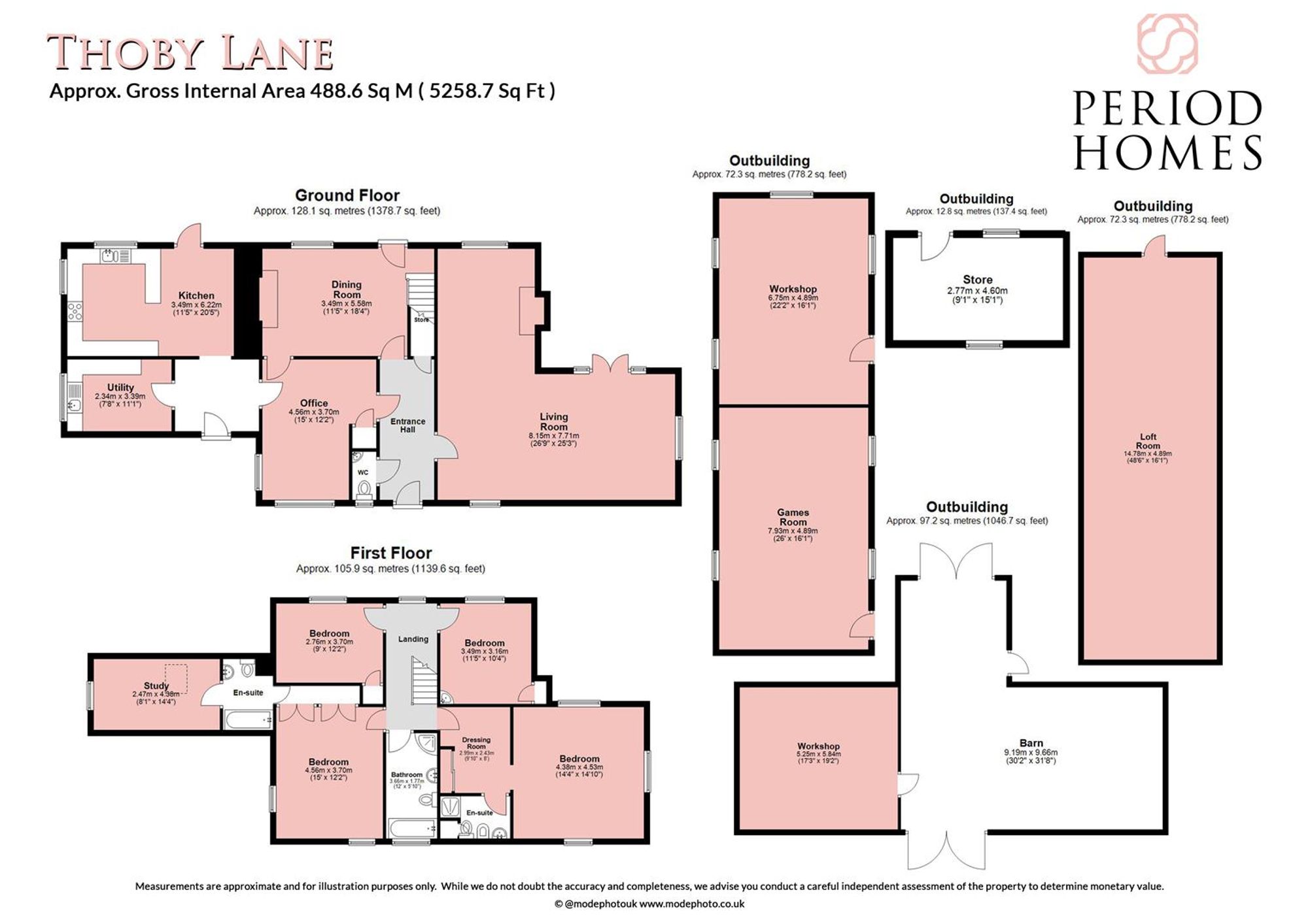 A standout feature of this property is the extensive range of outbuildings shown on the floorplan, offering remarkable flexibility: