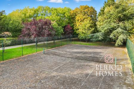 A previously enjoyed tennis court sits within the grounds, now requiring refurbishment but offering an exciting project for those wishing to reinstate this private sports facility.