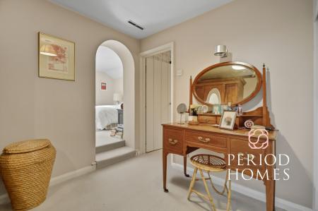To the first floor are four double bedrooms, including a principal bedroom with dressing area and en-suite bathroom. A further family bathroom serves the additional bedrooms, and a separate study off the second bedroom provides a quiet, tucked-away space with garden views.