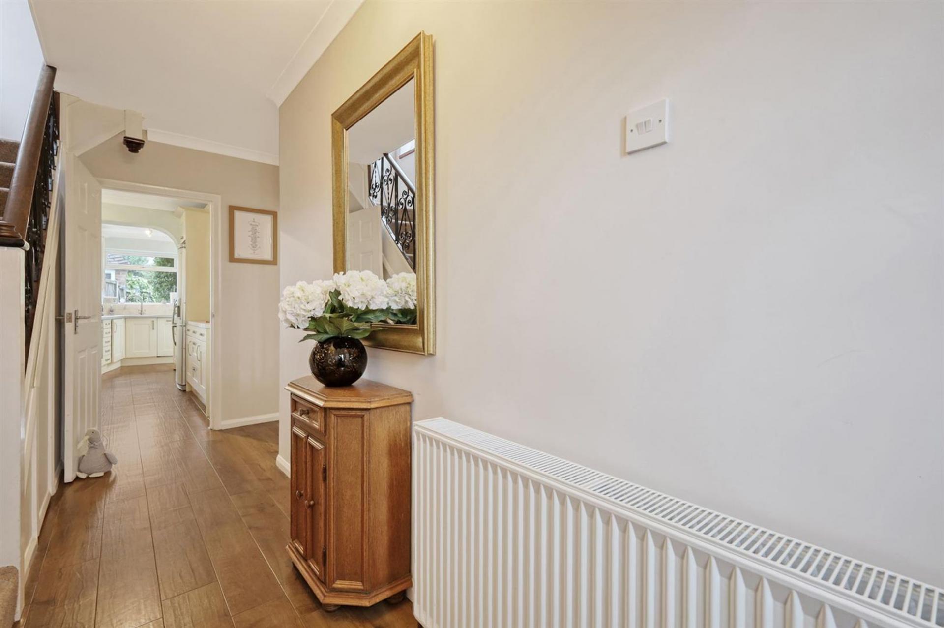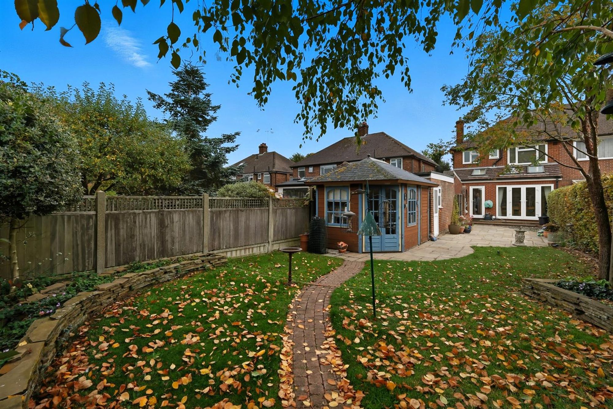 Externally, the mature rear garden is mainly laid to lawn surrounded by well-established planting. A detached single garage sits at the end of the driveway, which offers off-street parking for two vehicles.